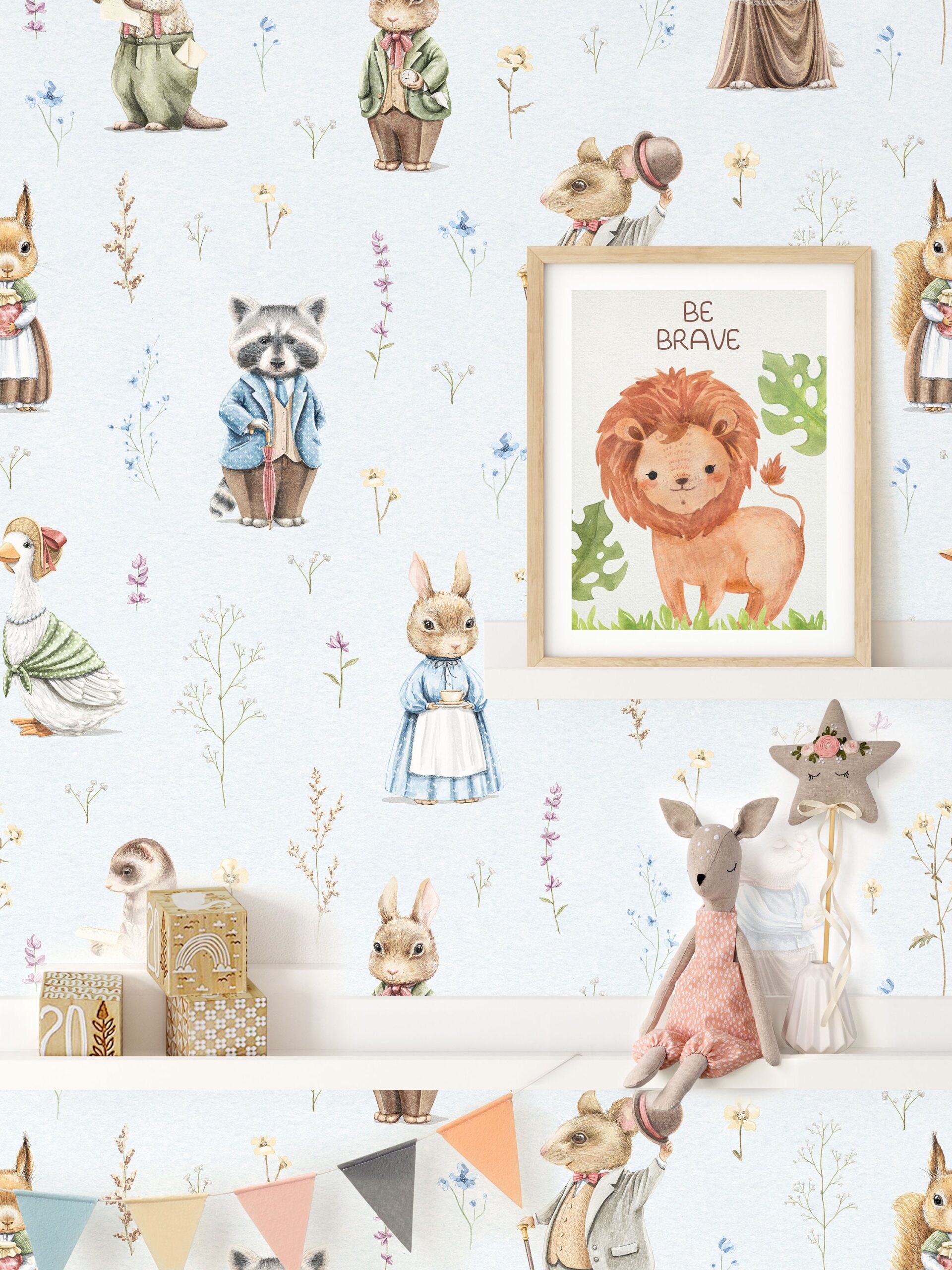 Animals Fairy tales Mural Flowers Wallpaper Watercolor Nursery Peel and Stick Removable Kid Room Decor Home Wall Art