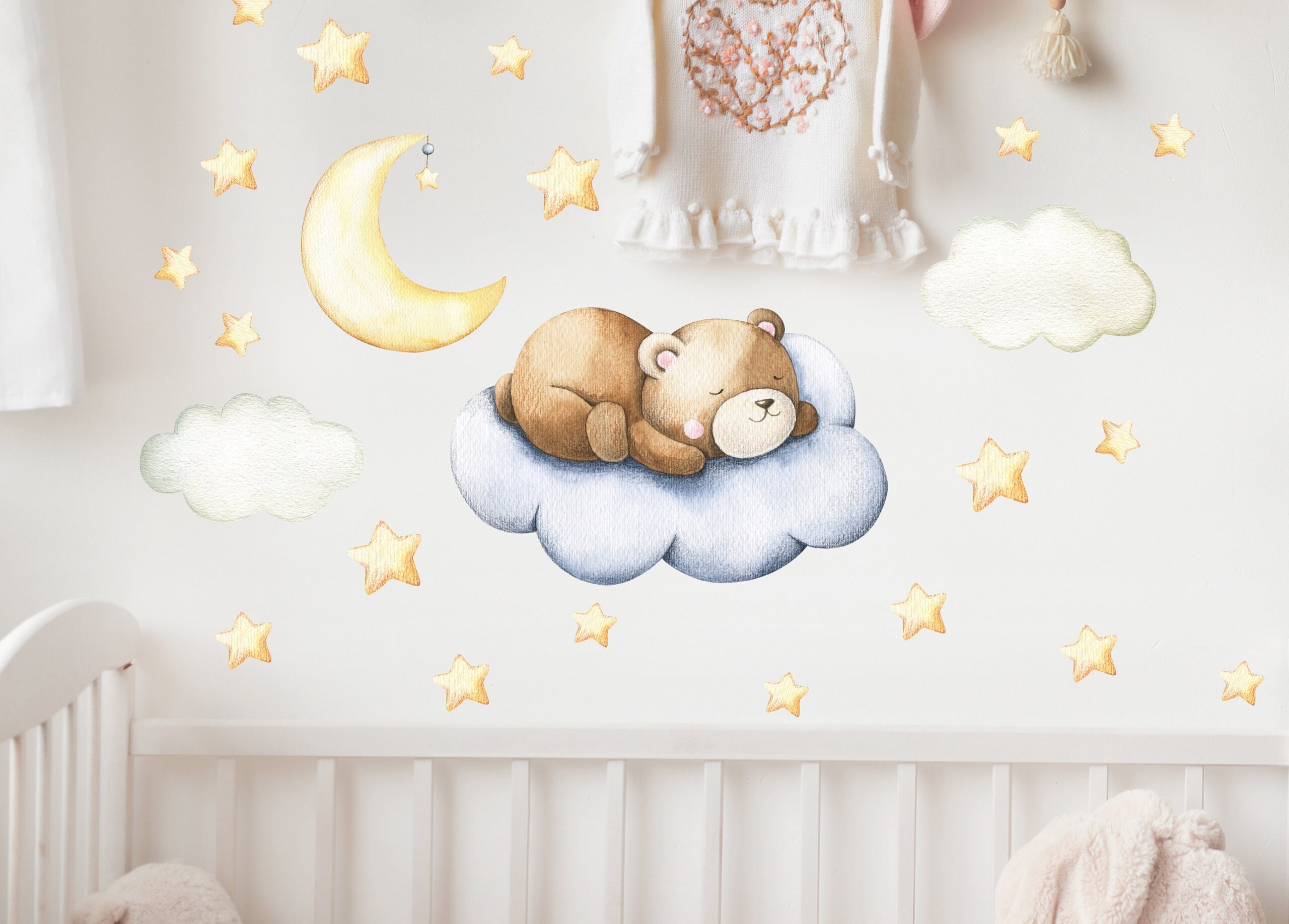 👶 Discover our bear nursery sleeping wall decals — a beautiful design that instantly elevates any room. Furthermore, each individual piece can be placed wherever you like, so you can create a truly unique arrangement.