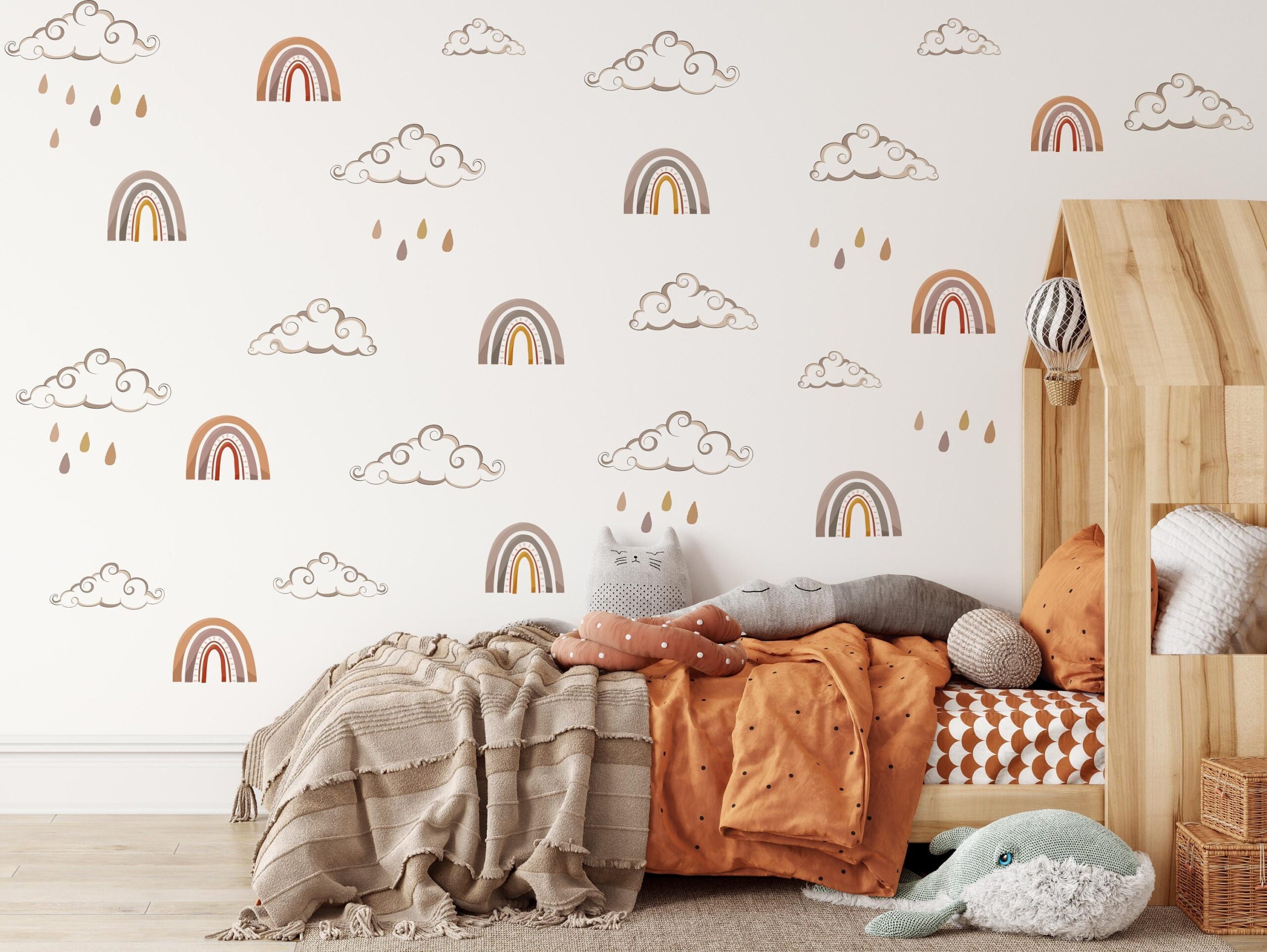Boho clouds Wall Decals Rainbows Stickers Muted Colors