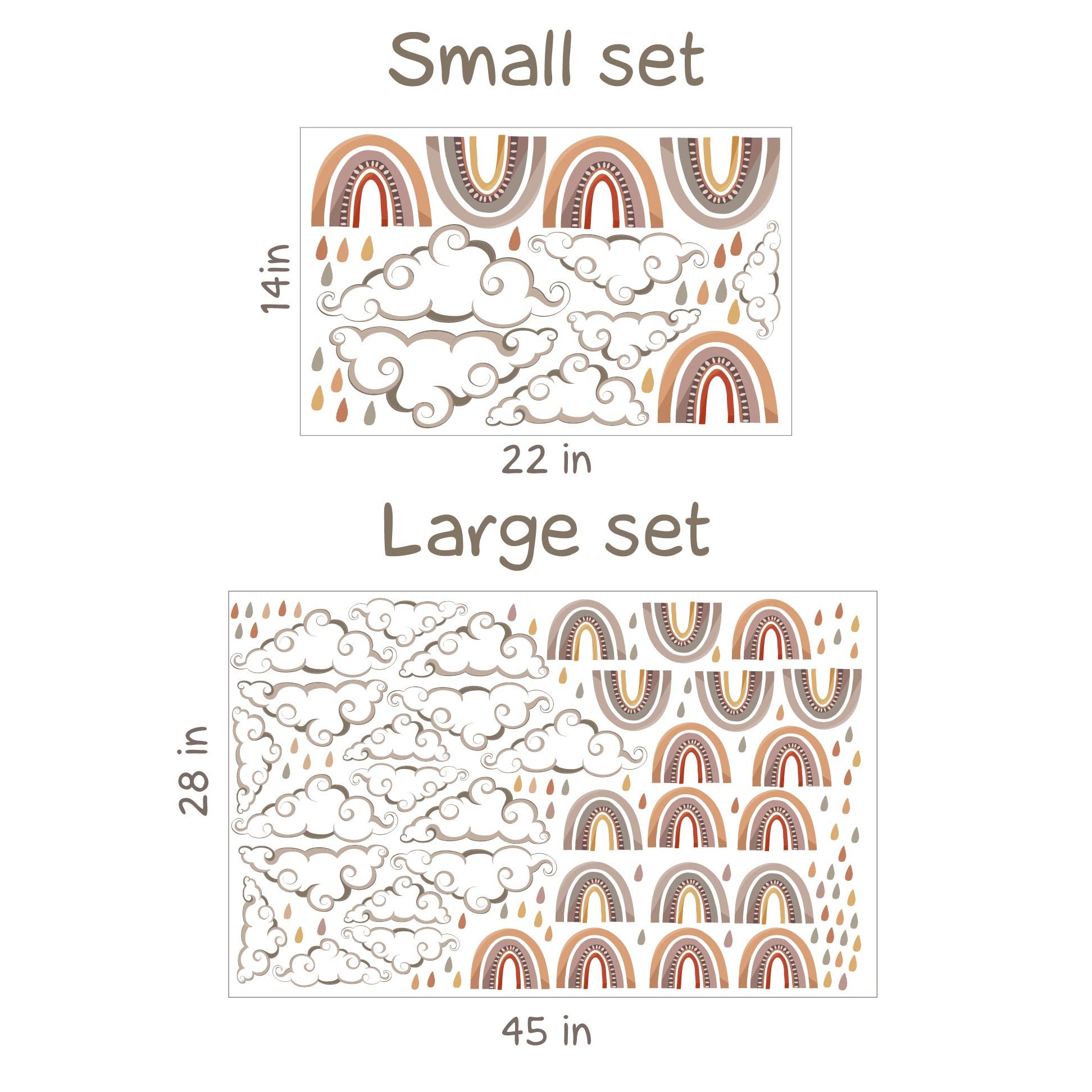 These boho clouds rainbows wall decals come in two set sizes — small and large. Therefore, you can choose the amount that best fits your wall space. Additionally, custom sizes are available on request.