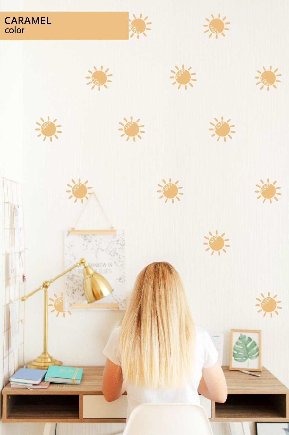 Brighten your space with these beautiful boho-style sun wall decals, perfect for nurseries, playrooms, or warm and earthy home decor. Each sun is designed in a simple, modern style that complements both minimalist and bohemian interiors.
