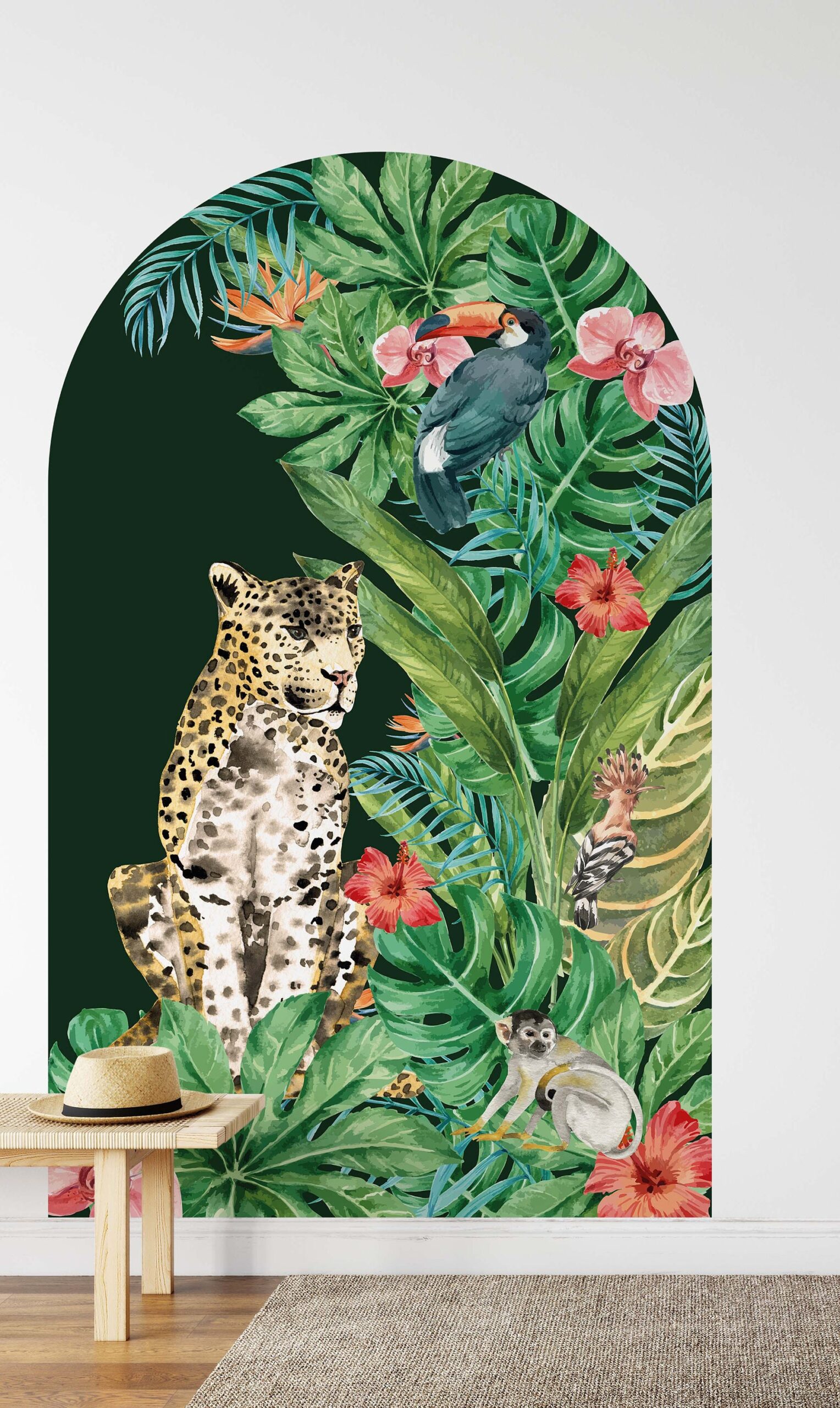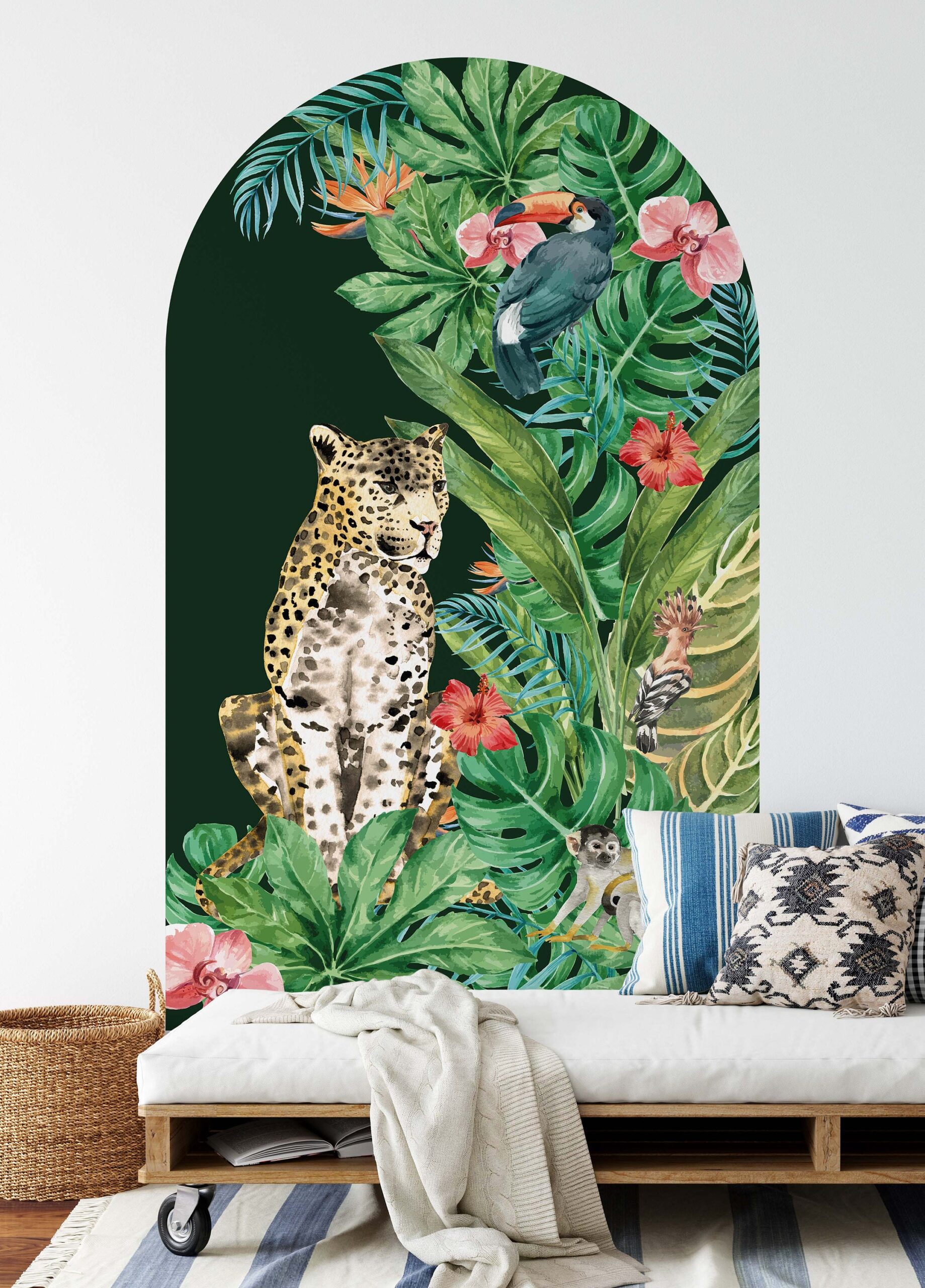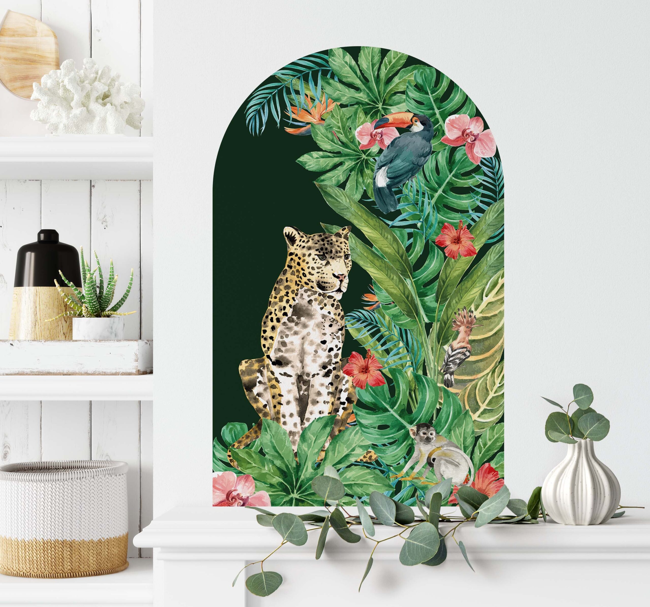 💌 Why Choose These Boho Tropical Arch Wall Decal | Cheetah Cat & Flowers?