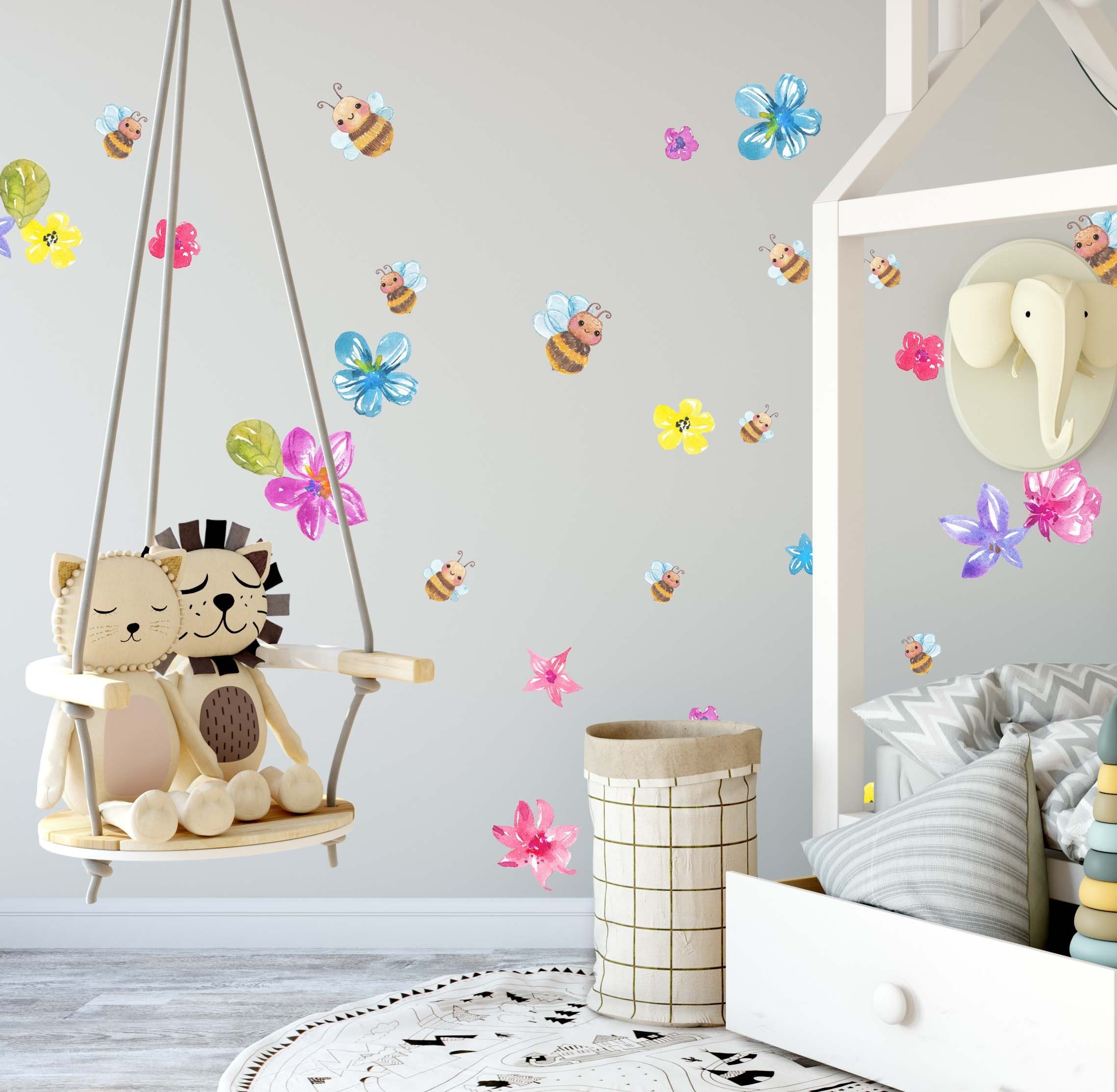Bring the beauty of nature indoors with these delicate watercolor bee wall decals! 🌼✨ Featuring hand-painted bees and floral accents, these stickers blend artistic elegance with playful design, making them perfect for nurseries, kids’ rooms, or botanical-themed living spaces