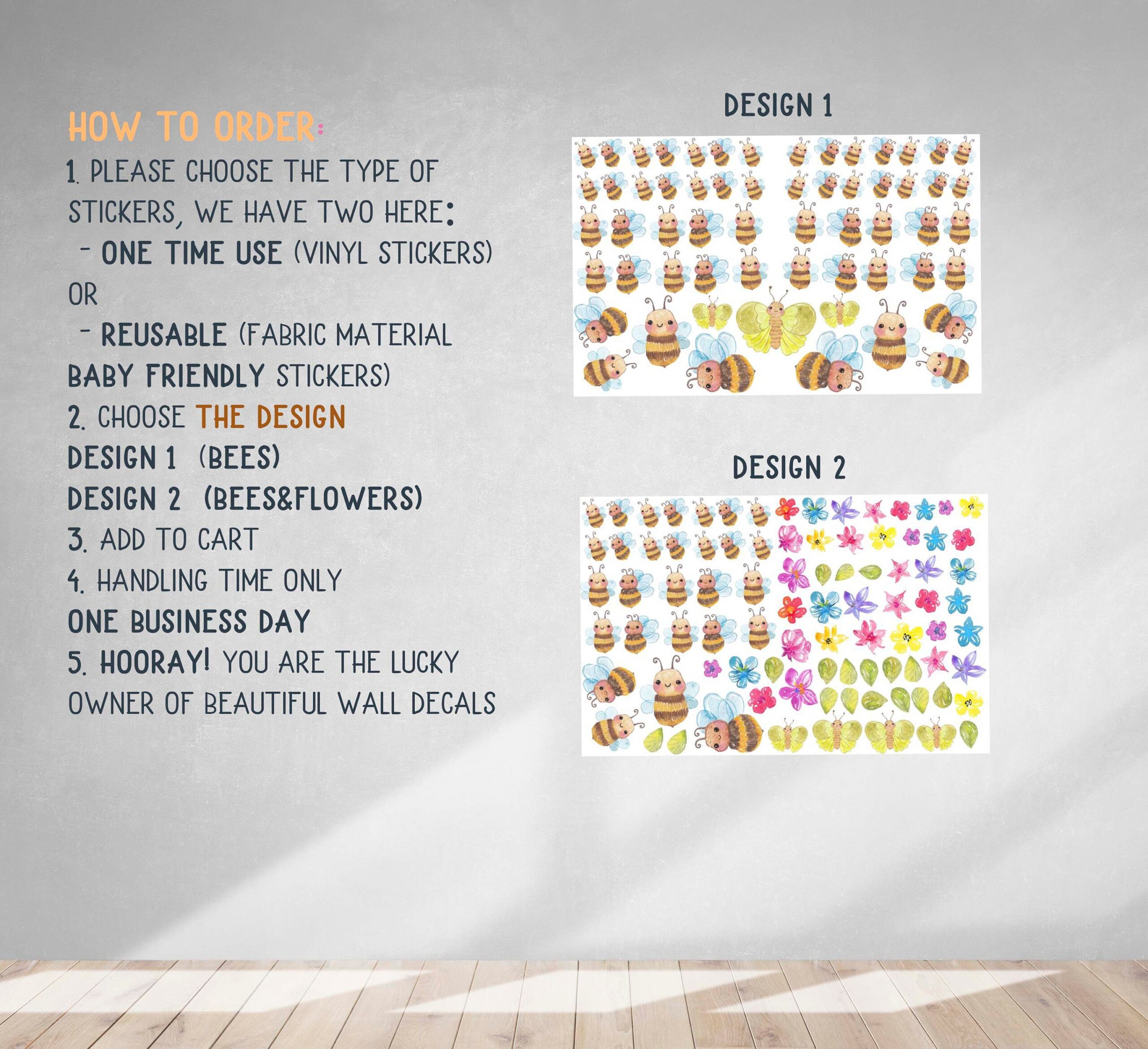 Our bumblebee watercolor animal wall decals in vinyl are made with premium 3M and Oracal vinyl with a matte finish. They apply easily and remove cleanly without damaging your walls. Moreover, they work well on flat walls, slightly textured surfaces, doors, windows, and furniture.