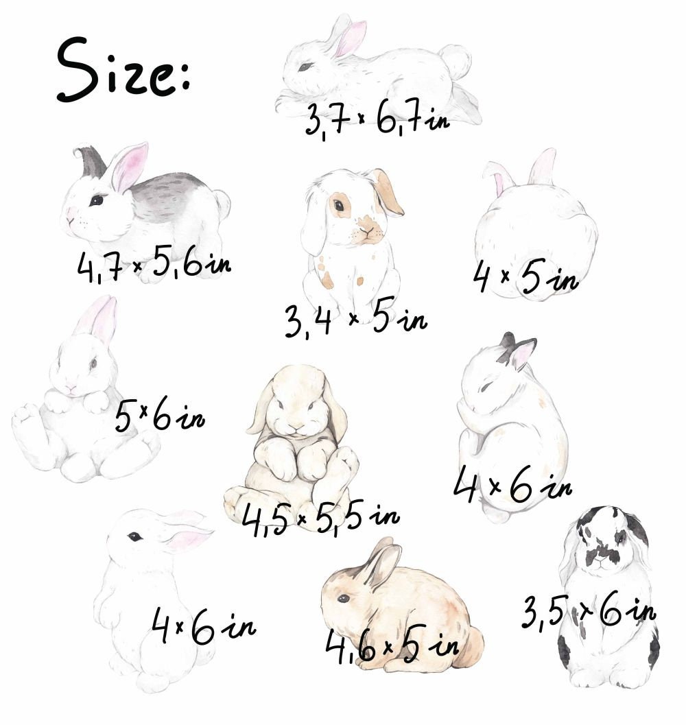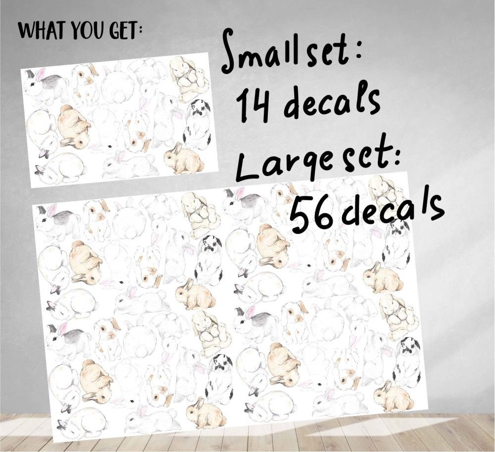 These bunny nursery rabbit wall decals come in two set sizes — small and large. Therefore, you can choose the amount that best fits your wall space. Additionally, custom sizes are available on request.
