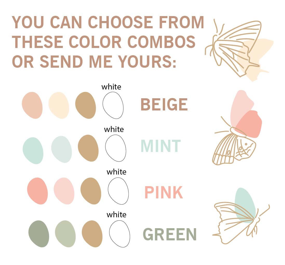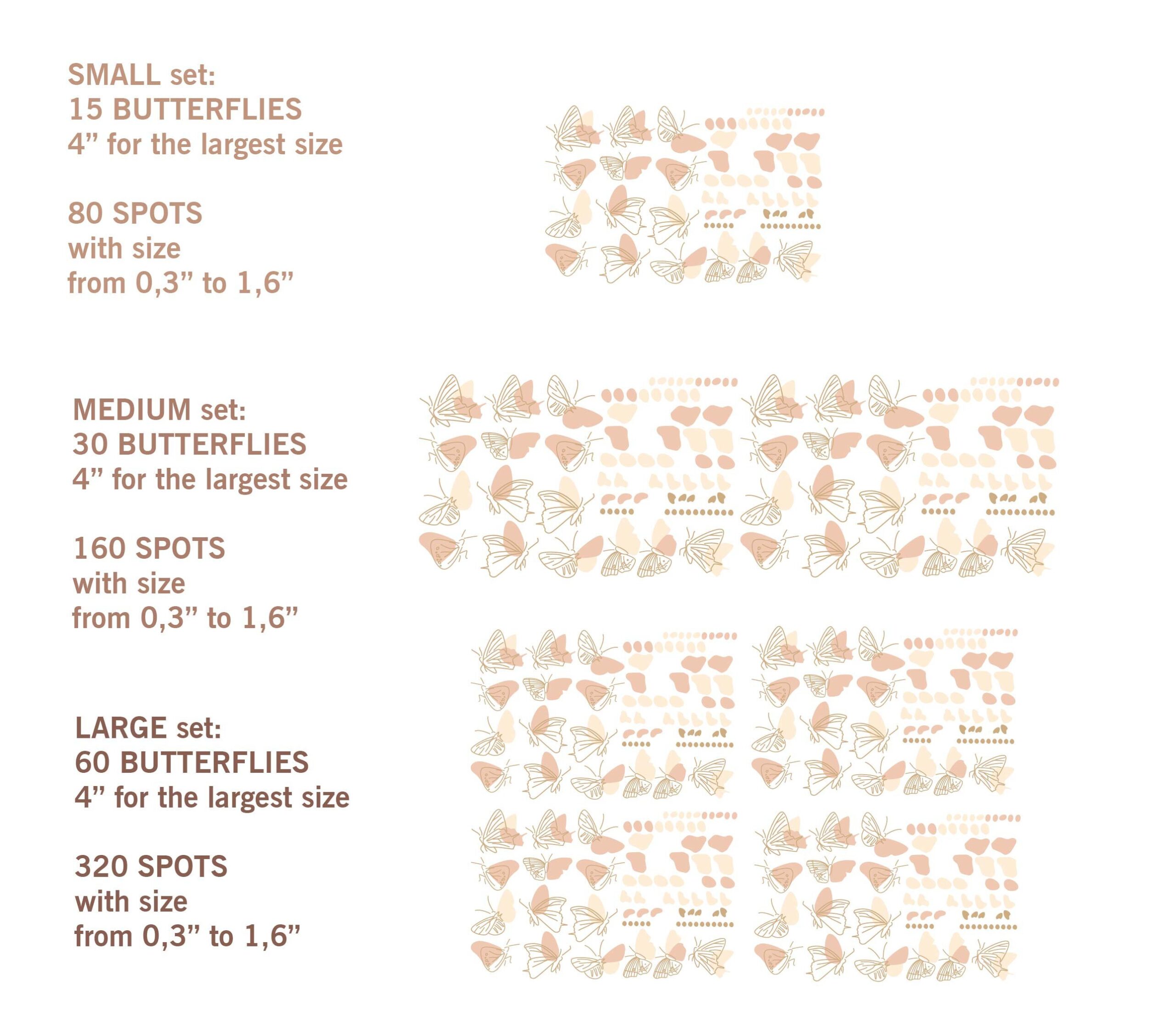 These butterfly boho polka wall decals come in two set sizes — small and large. Therefore, you can choose the amount that best fits your wall space. Additionally, custom sizes are available on request.