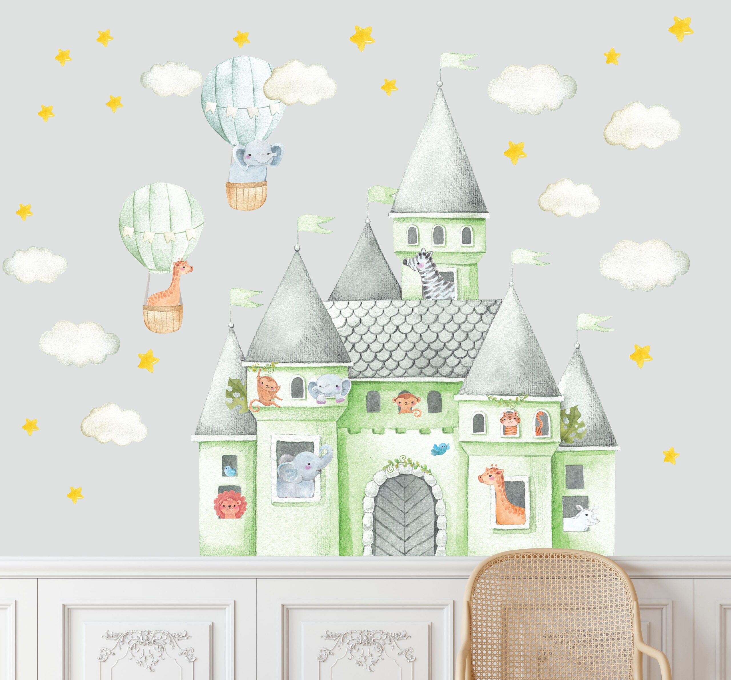 🐾 Discover our castle watercolor safari wall decals — a beautiful design that instantly elevates any room. Furthermore, each individual piece can be placed wherever you like, so you can create a truly unique arrangement.