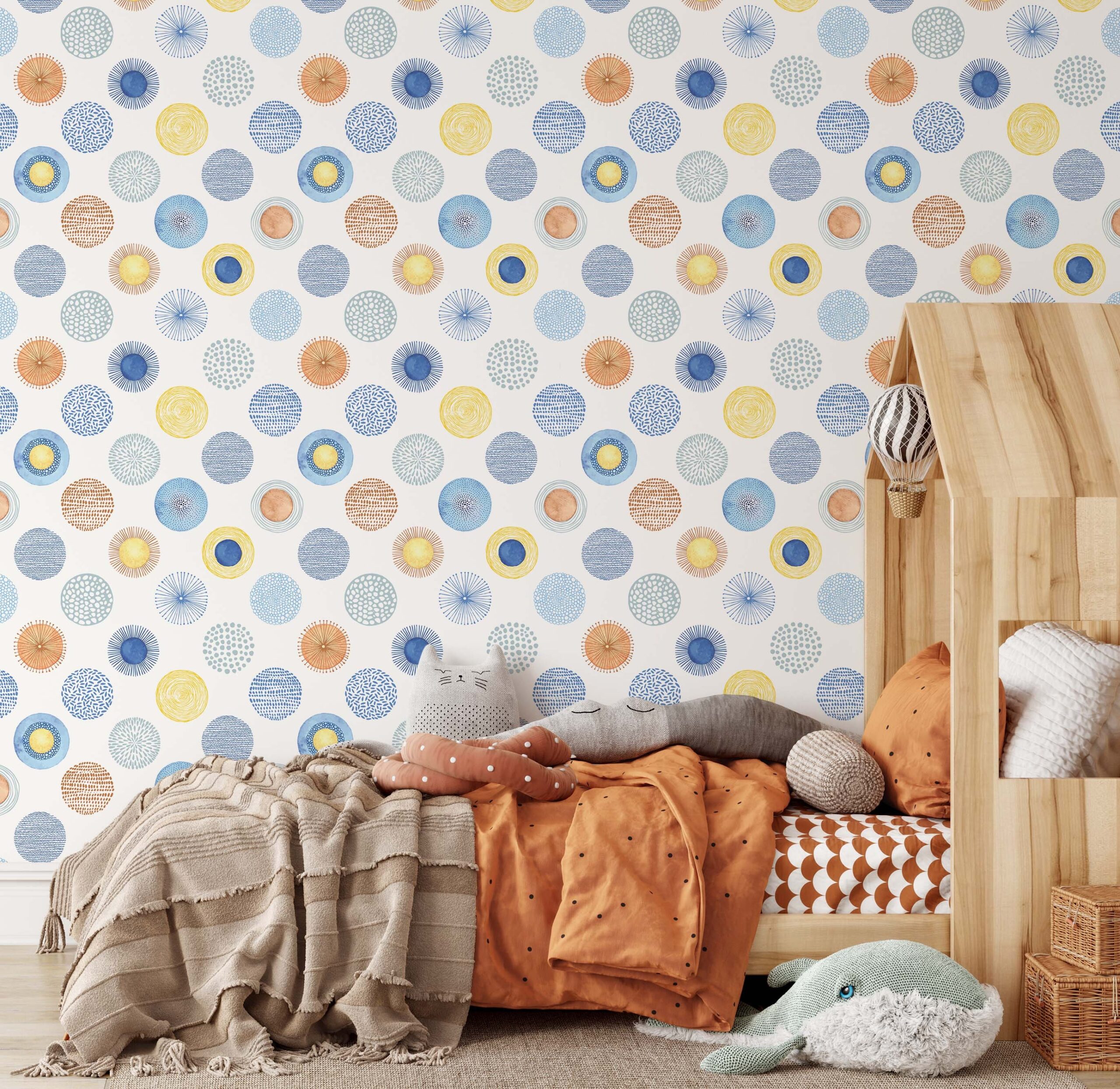 The fabric version of these circles wallpaper scandinavian wall decals can be repositioned up to 10 times without losing adhesion. Additionally, it leaves zero sticky residue when removed — making it ideal for rental spaces and kids’ rooms.
