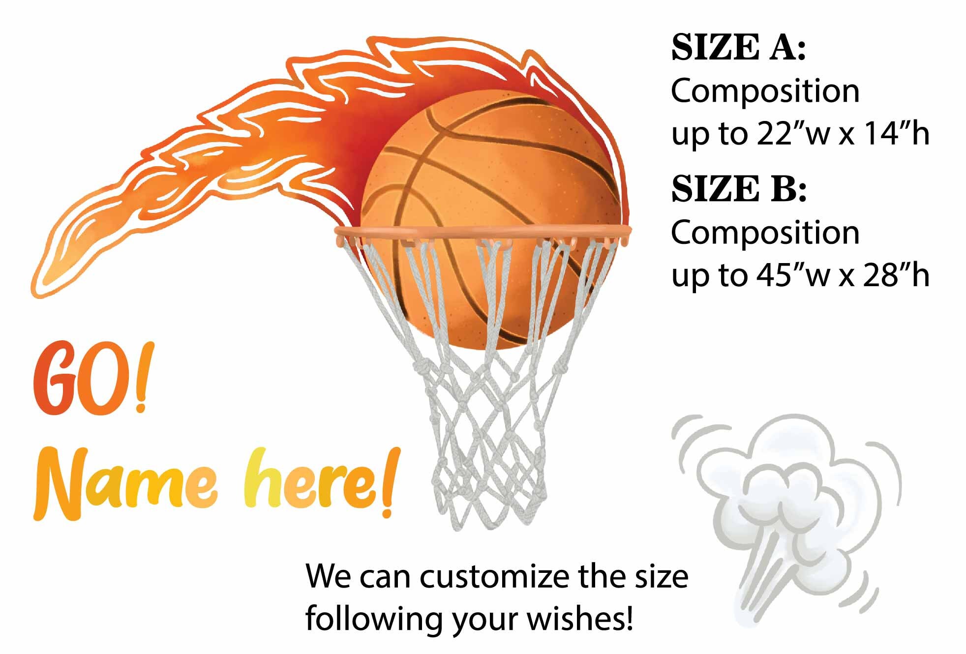 Our custom name basketball wall decals in vinyl are made with premium 3M and Oracal vinyl with a matte finish. They apply easily and remove cleanly without damaging your walls. Moreover, they work well on flat walls, slightly textured surfaces, doors, windows, and furniture.