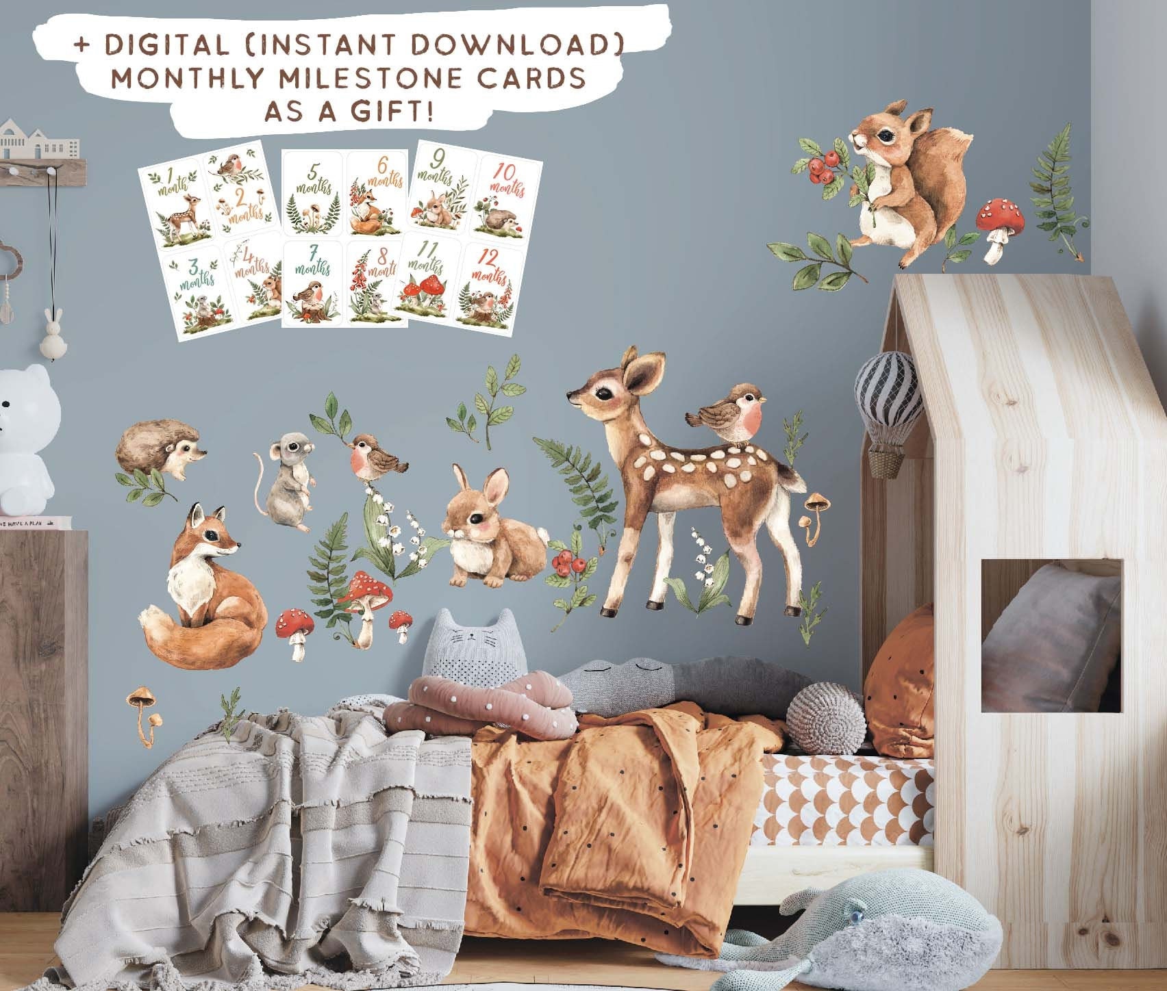 Cute Woodland Animals Wall Decals, Forest Stickers Cottagecore