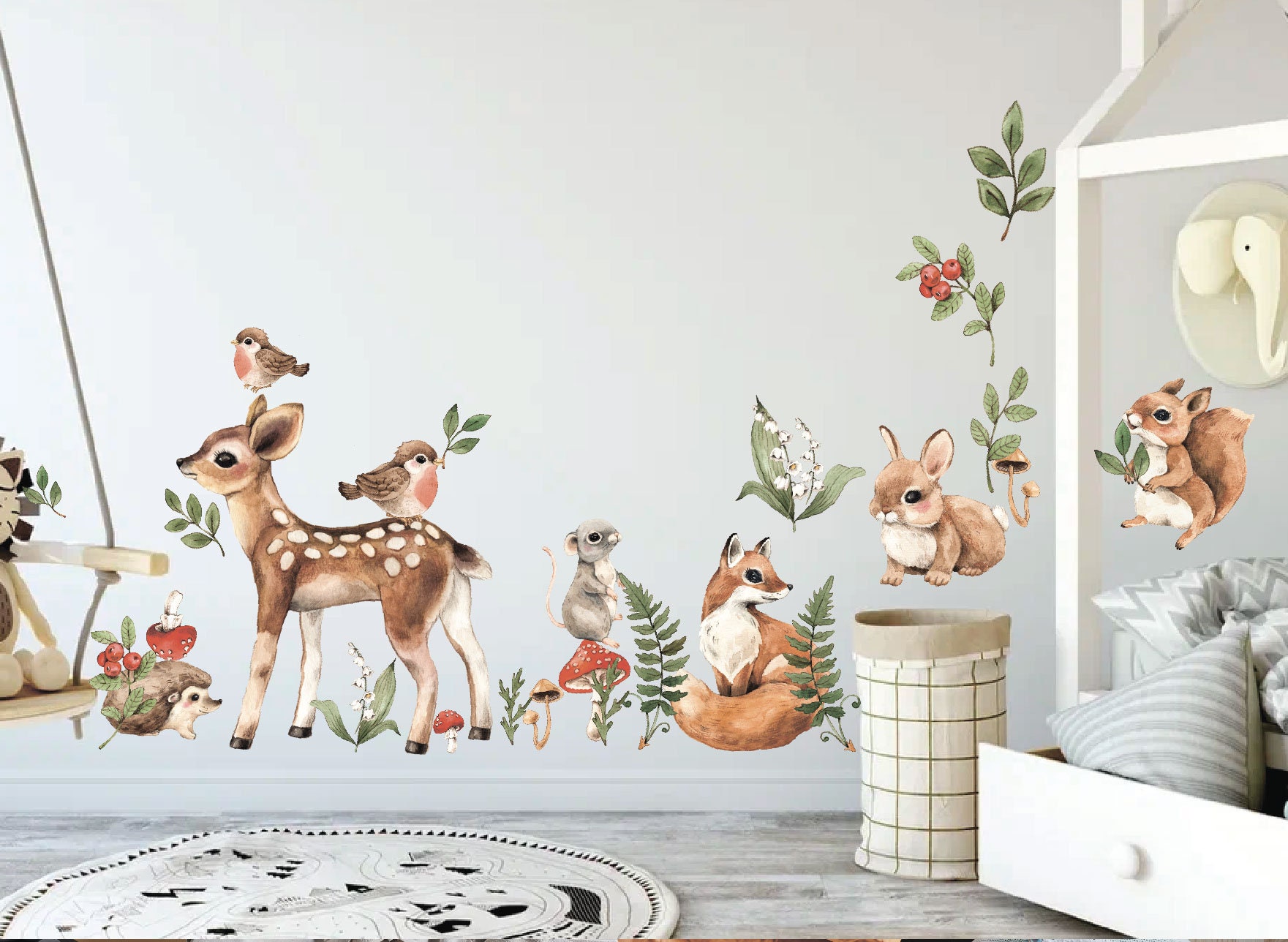 🐾 Discover our cute woodland animals wall decals — a beautiful design that instantly elevates any room. Furthermore, each individual piece can be placed wherever you like, so you can create a truly unique arrangement.