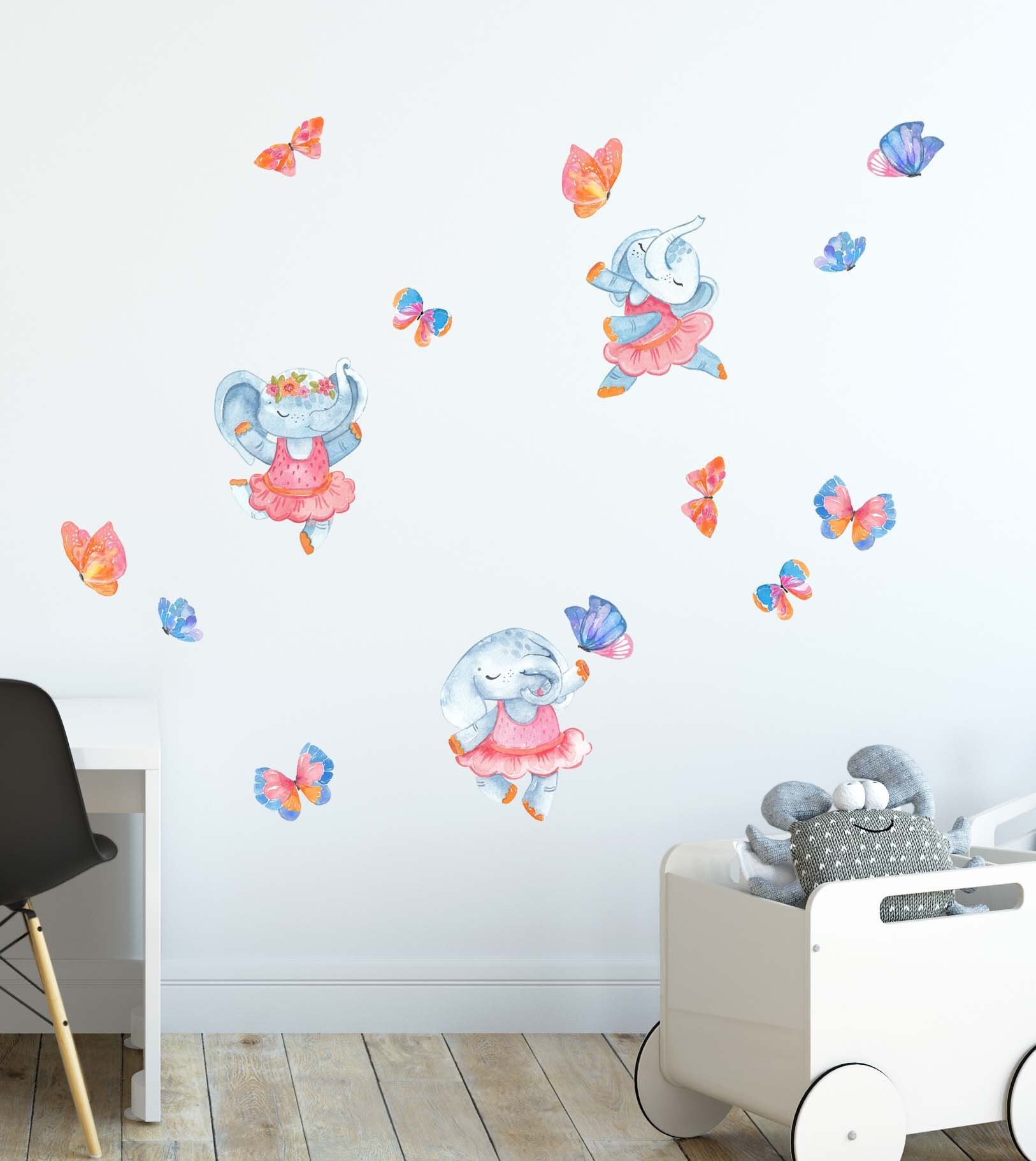 Dancing baby elephants wall decals, ballet dancer stickers set for nursery room decor LF024