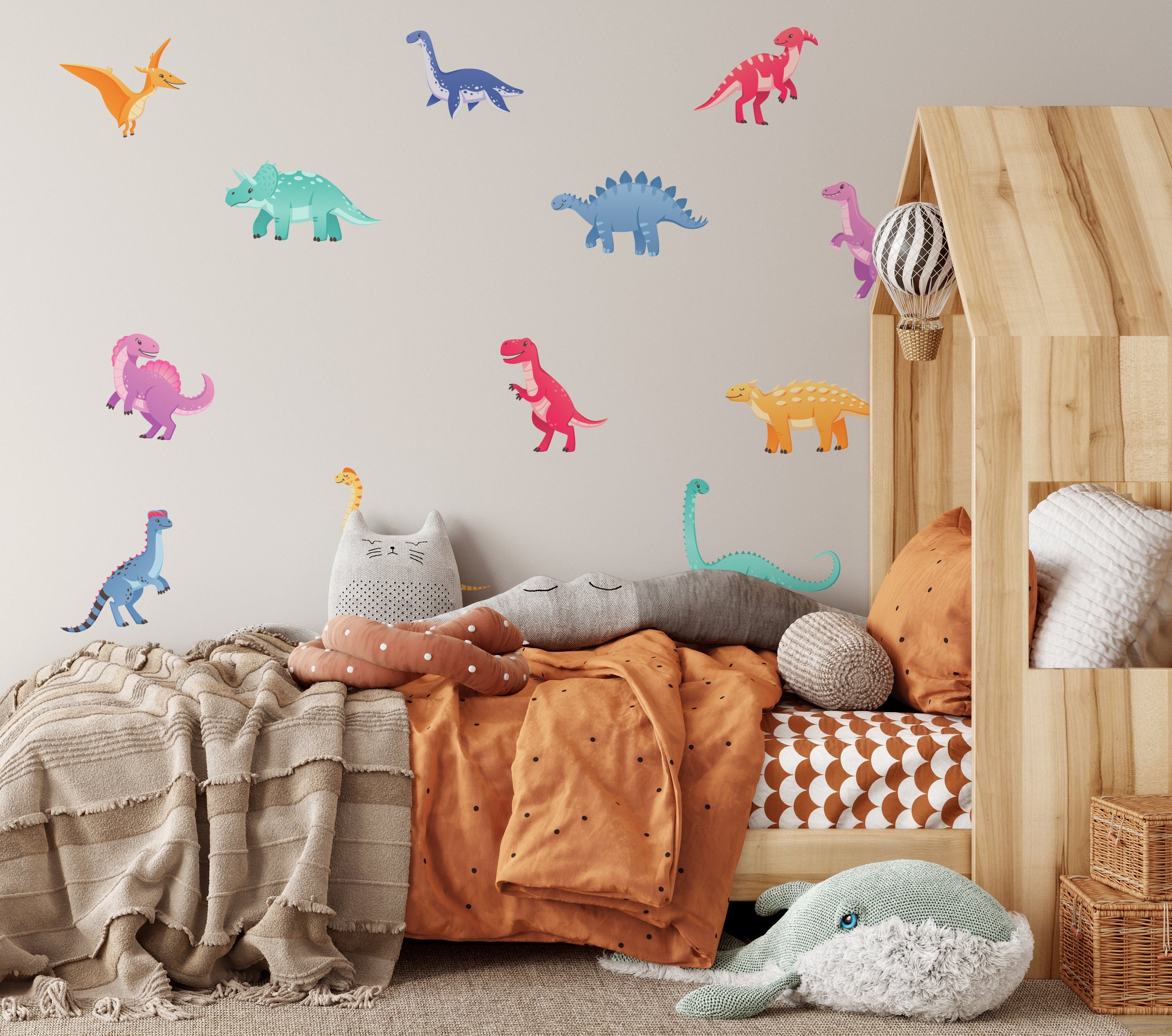 Dinosaur Wall Decals Girl Nursery Stickers Colored Room Decoration Kids Play room, Reusable and Removable,D012