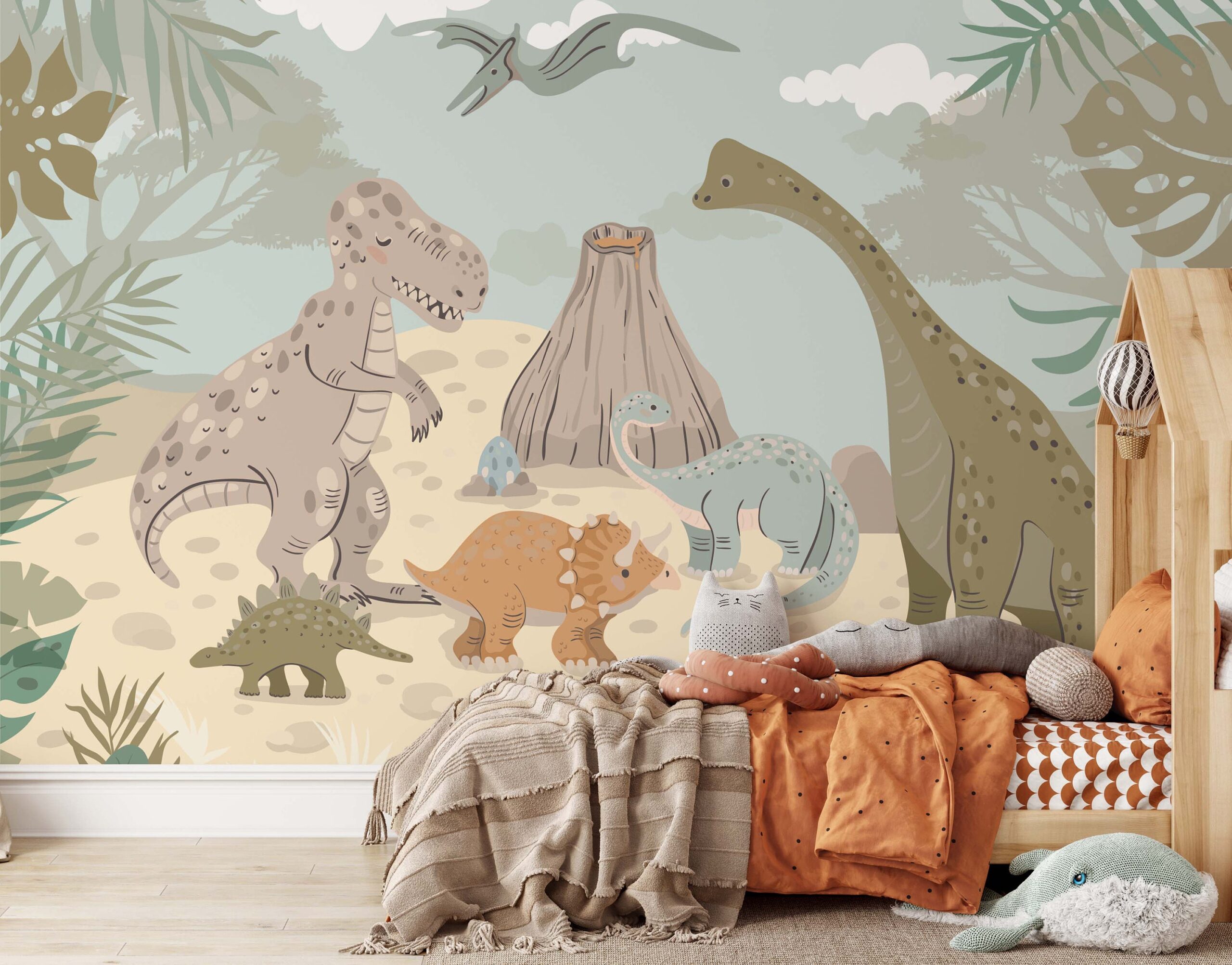 Dinosaur Wallpaper Rainbow Removable Peel and Stick Dino Wall Murals