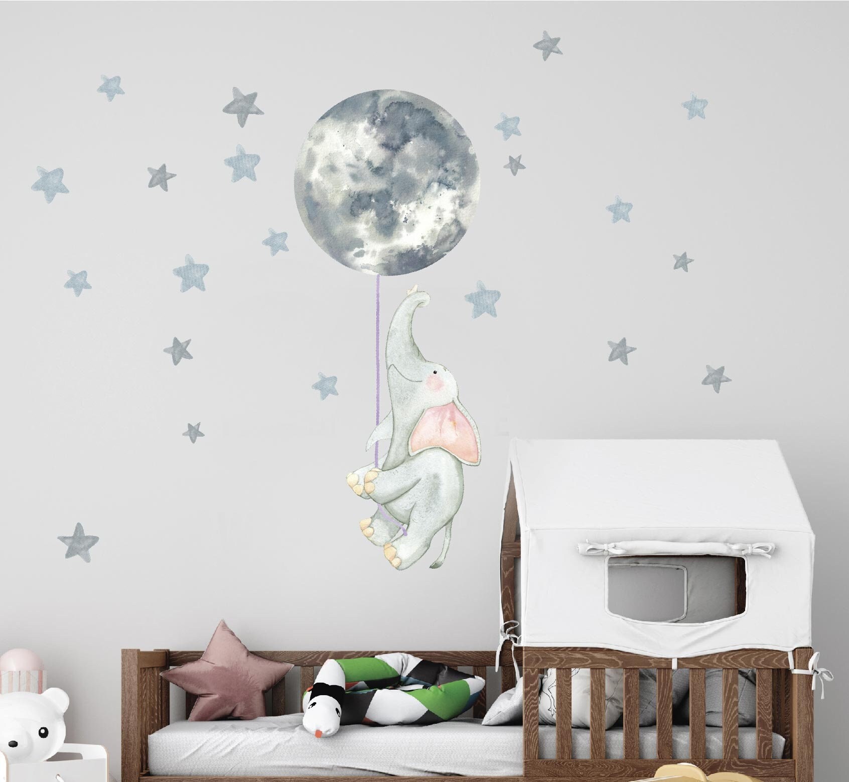 Elephant Wall Decal Moon Stars Stickers, LF034