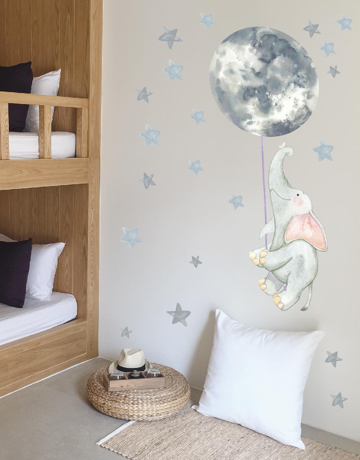 🐾 Discover our elephant moon stars wall decals — a beautiful design that instantly elevates any room. Furthermore, each individual piece can be placed wherever you like, so you can create a truly unique arrangement.