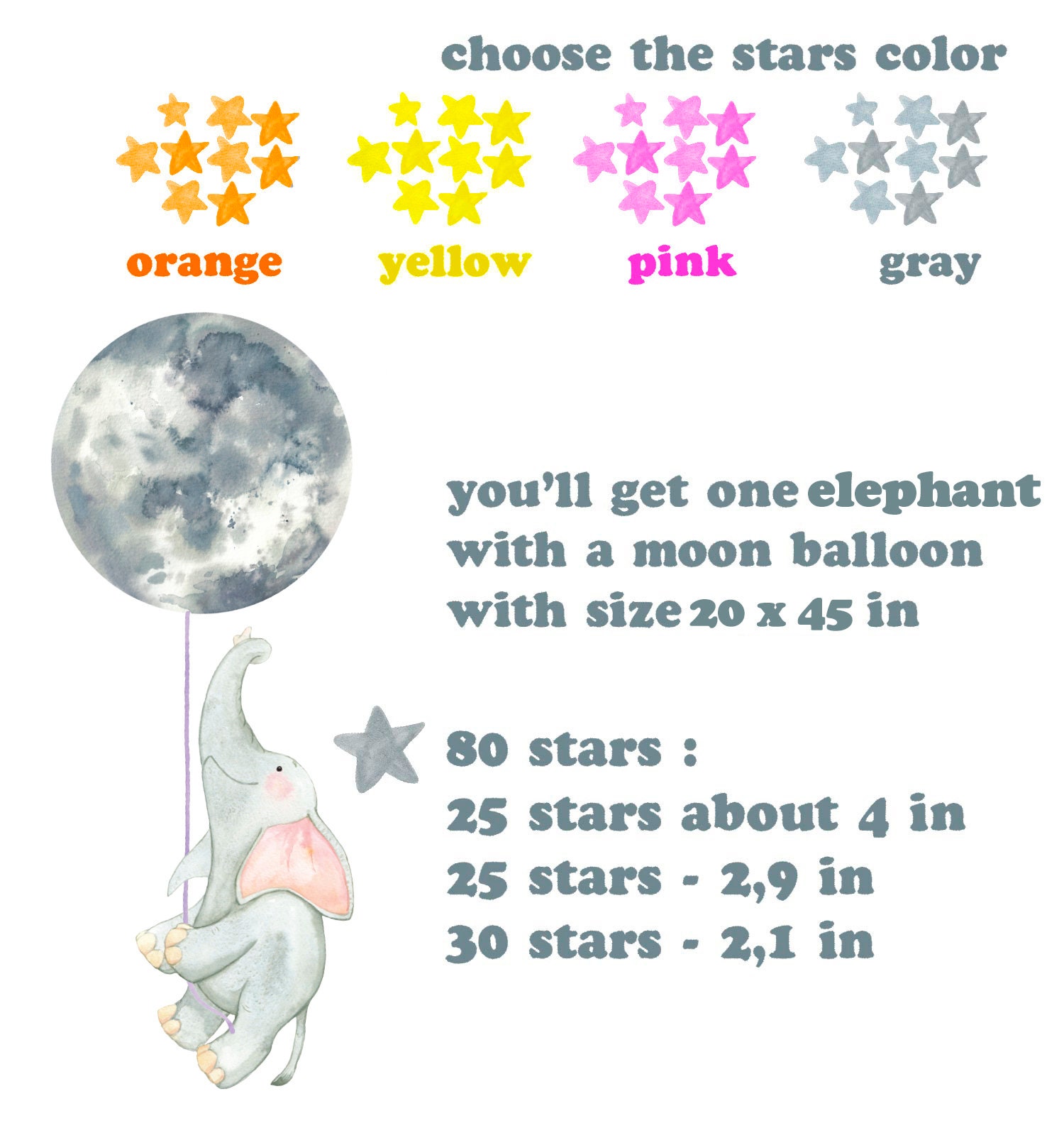 Elephant Moon Stars Wall Decals – What’s Included