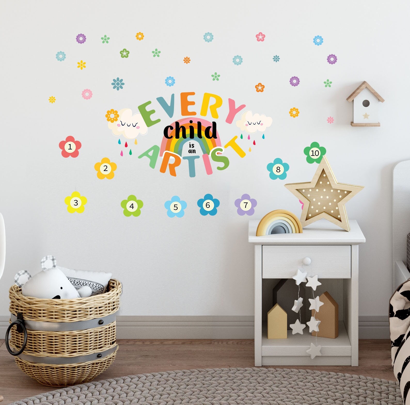 Every Child is an Artist Wall Stickers Flowers Rainbow Clouds Playroom Decor Number 1 – 10 Classroom Kids Art gallery