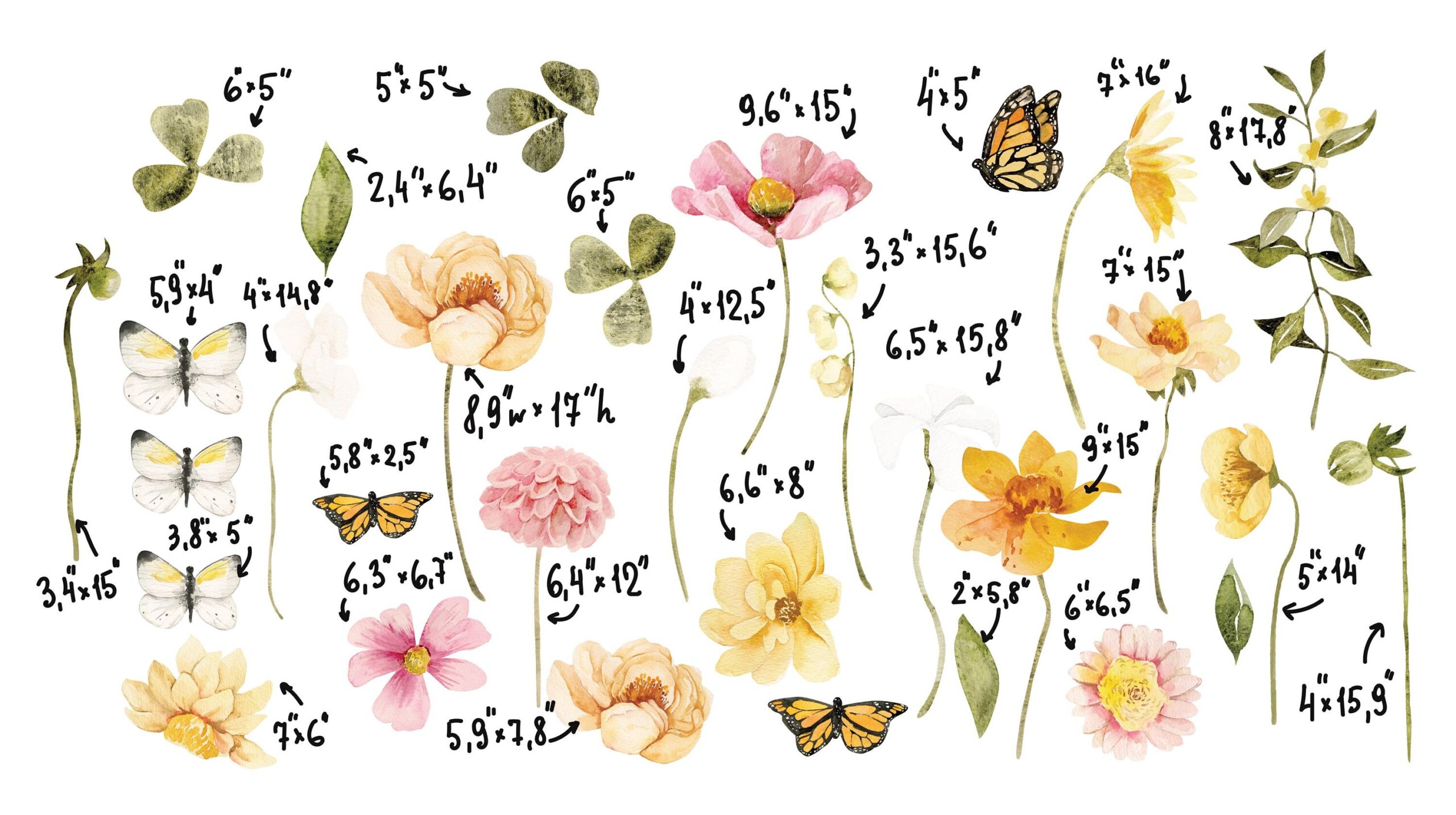 These field flowers wild wall decals are pre-cut and ready to apply. In addition, detailed installation instructions are included with every order.
