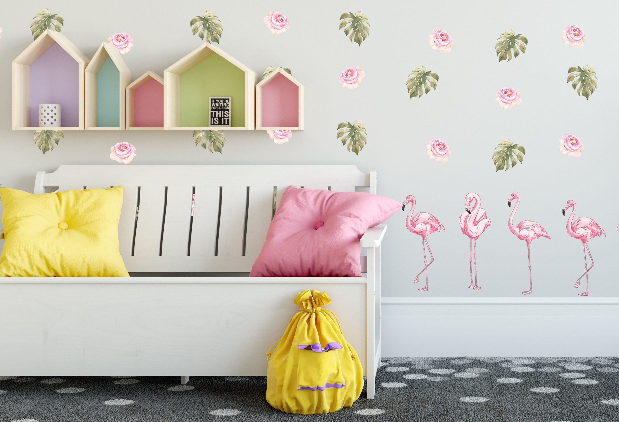 Flamingo Roses Leaves Wall Decals – What’s Included