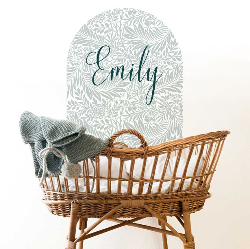 Floral Custom Name Large Arch Wall Sticker Nursery Kid’s Bathroom Greenery Decals Girls Boho Room, Nesting Party Gift