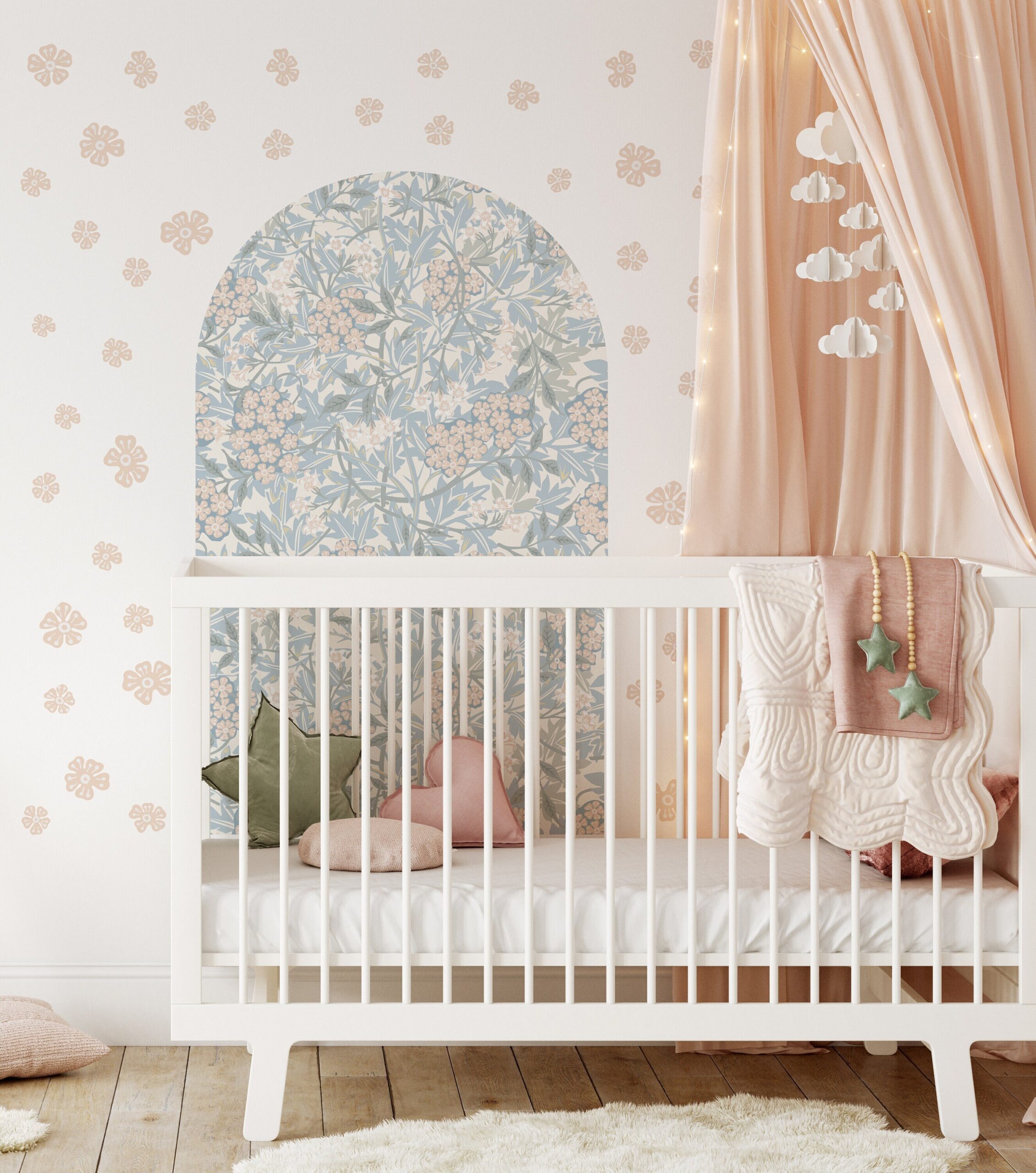 Large Floral Arch Wall Sticker Beige Flowers Neutral Nursery Greenery Decals Girls Boys Boho Room