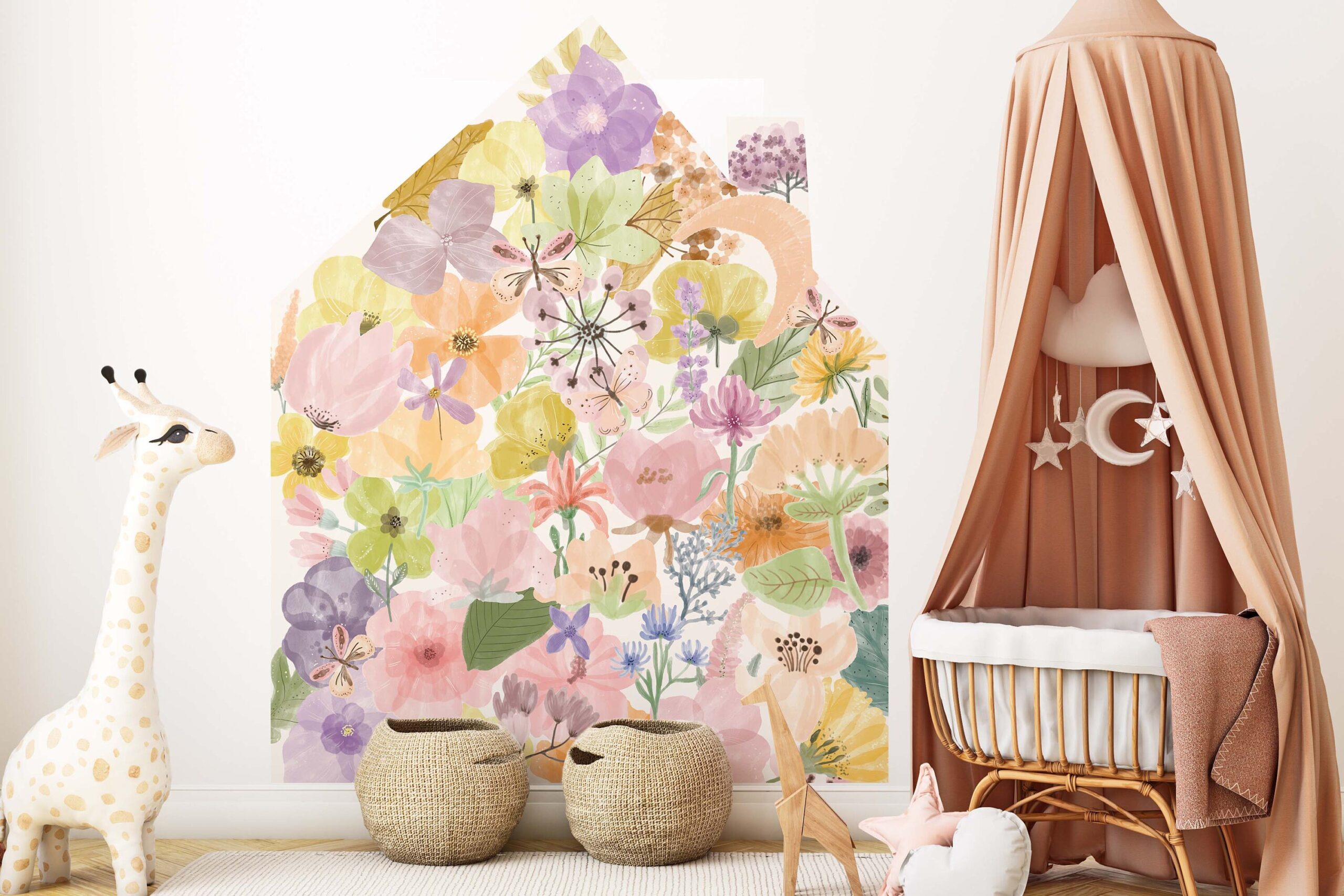 Transform blank walls into a blooming paradise with this stunning floral house decal! 🌺 Perfect for adding a bold, botanical statement to living rooms, entryways, or nurseries, this design combines whimsical florals with a charming house silhouette for a touch of fairytale magic.