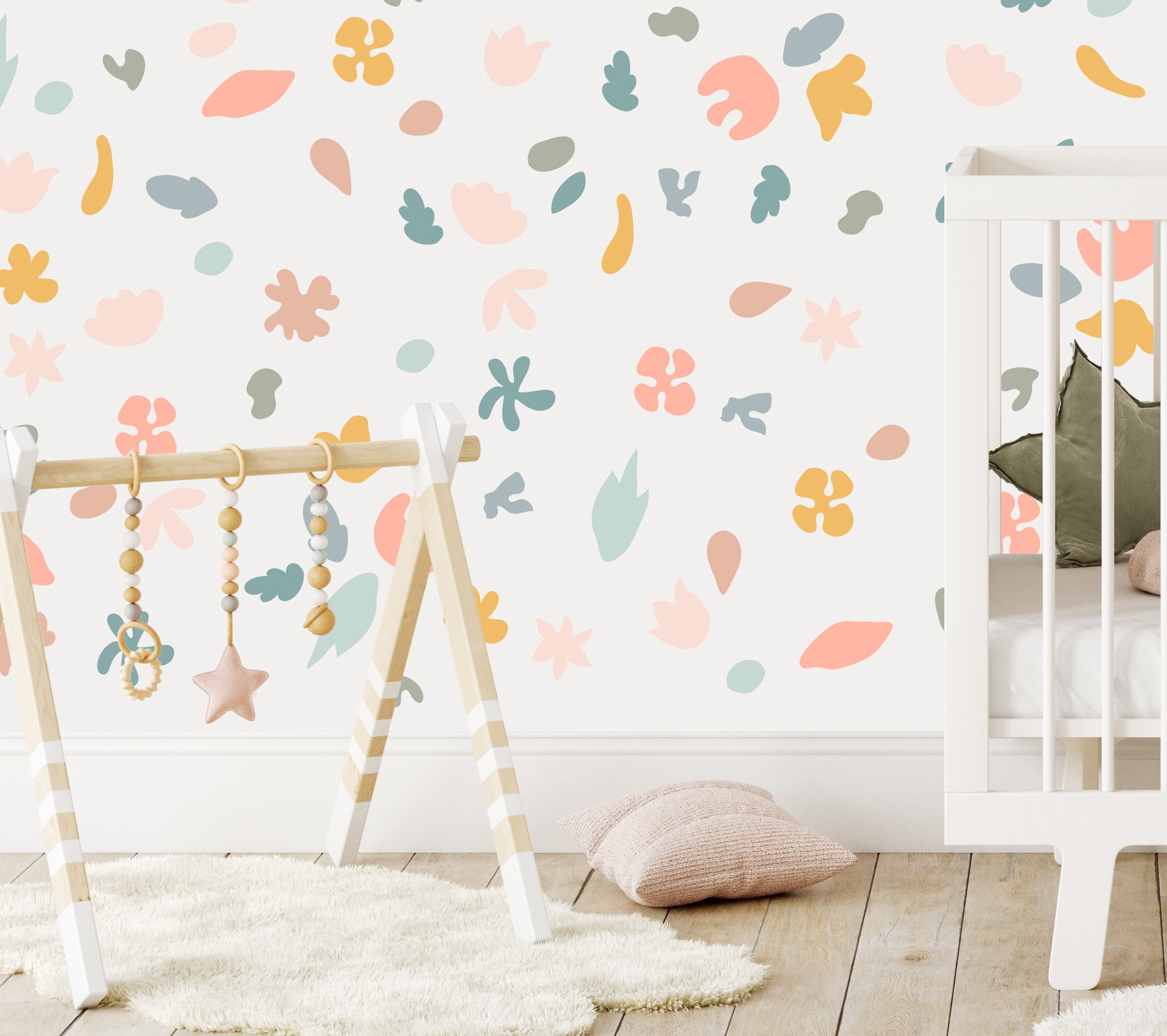 Floral Wall Stickers, Simple Meadow Flowers Wall Decal, Nursery Wall decor, Boho style Girls room, Pastel Spots and Greenery Playroom