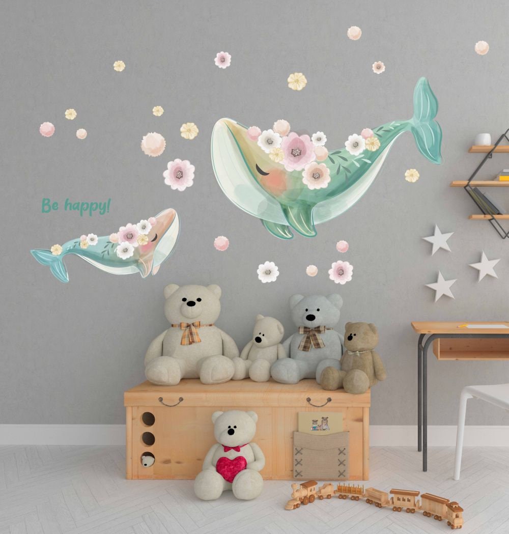 Brighten up any nursery or kid’s room with our Floral Whale Wall Decals Stickers. These beautiful, removable decals combine ocean and floral themes to create a serene, imaginative space. Shop now for high-quality, easy-to-apply wall stickers that transform your walls into a work of art!
