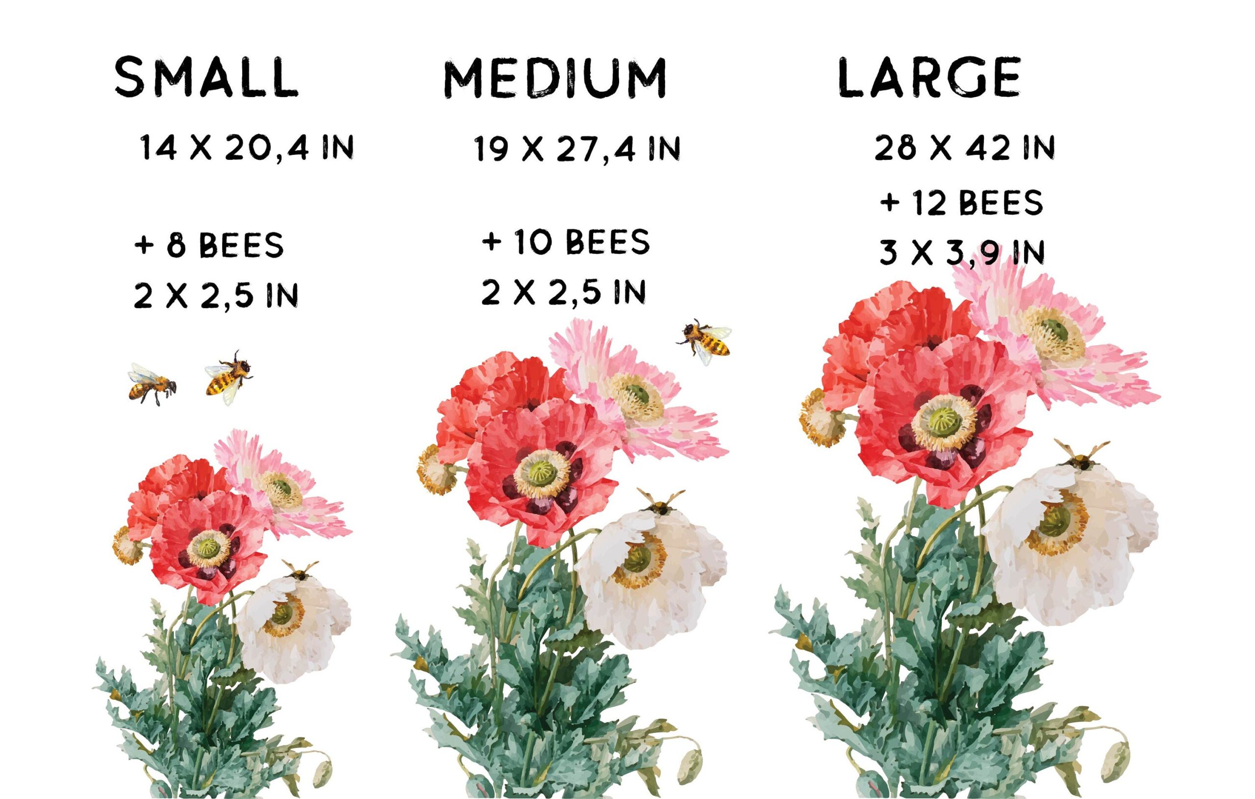 These flower greenery floral wall decals come in two set sizes — small and large. Therefore, you can choose the amount that best fits your wall space. Additionally, custom sizes are available on request.