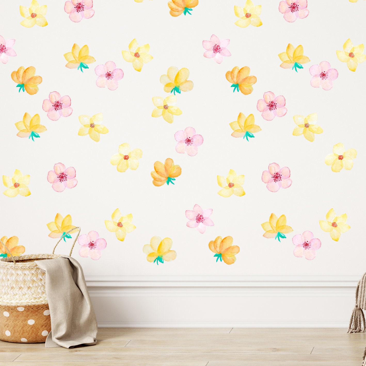 Flowers Wall Decals Greenery Sticker Nursery Room Decoration Daisy, Reusable and Removable