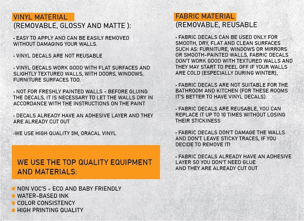 All vinyl decals come with a matte finish, which gives a clean and natural look on any wall. As a result, the design blends beautifully into your interior.