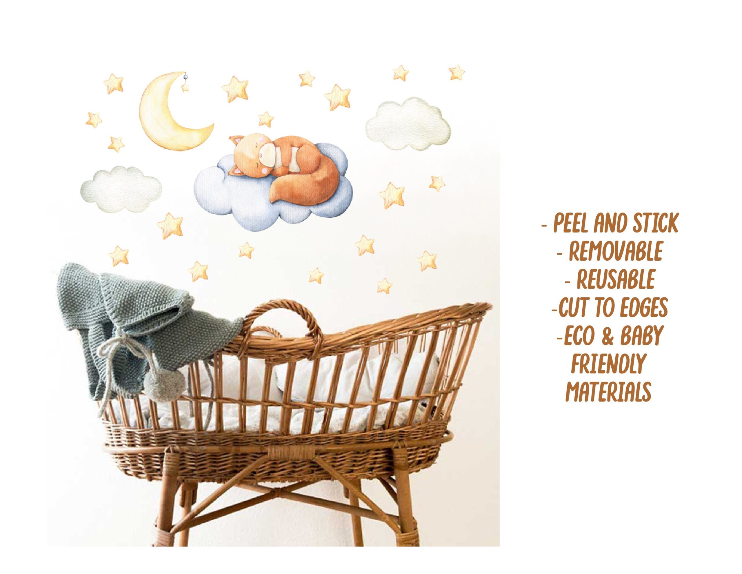 👶 Discover our fox nursery sleeping wall decals — a beautiful design that instantly elevates any room. Furthermore, each individual piece can be placed wherever you like, so you can create a truly unique arrangement.