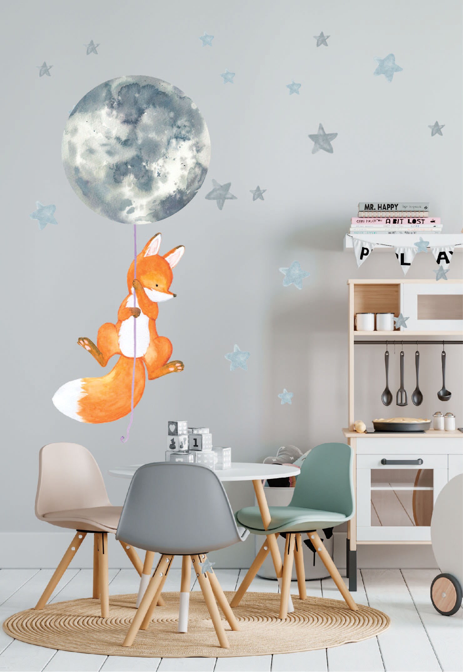 👶 Add stunning fox moon stars wall decals to your space — a beautiful design that instantly transforms any wall. Furthermore, each individual piece can be placed wherever you like for a fully custom look.