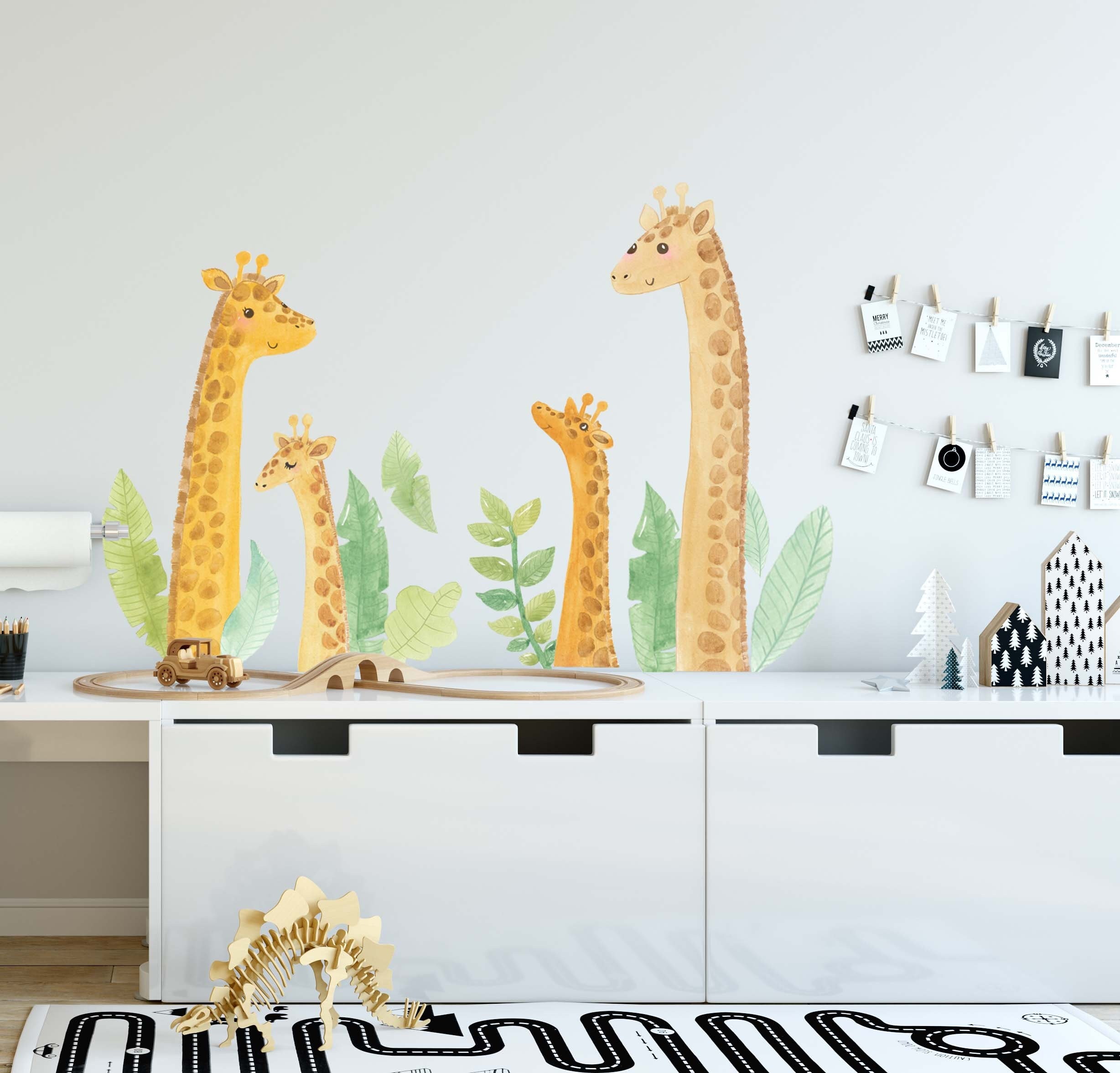 Giraffe Wall Decals Safari Animal Stickers Jungle Tropical Green Leaf