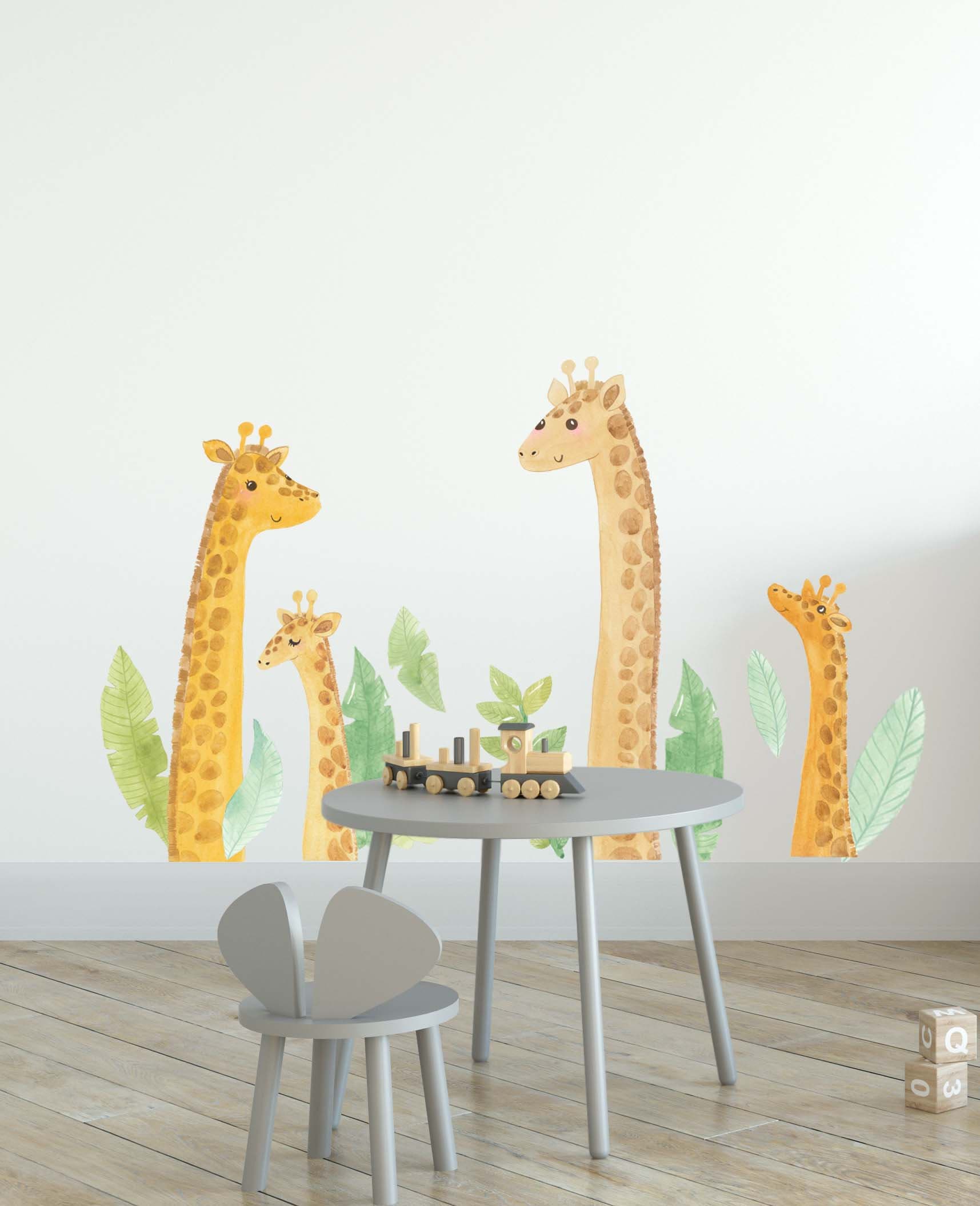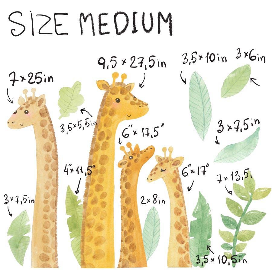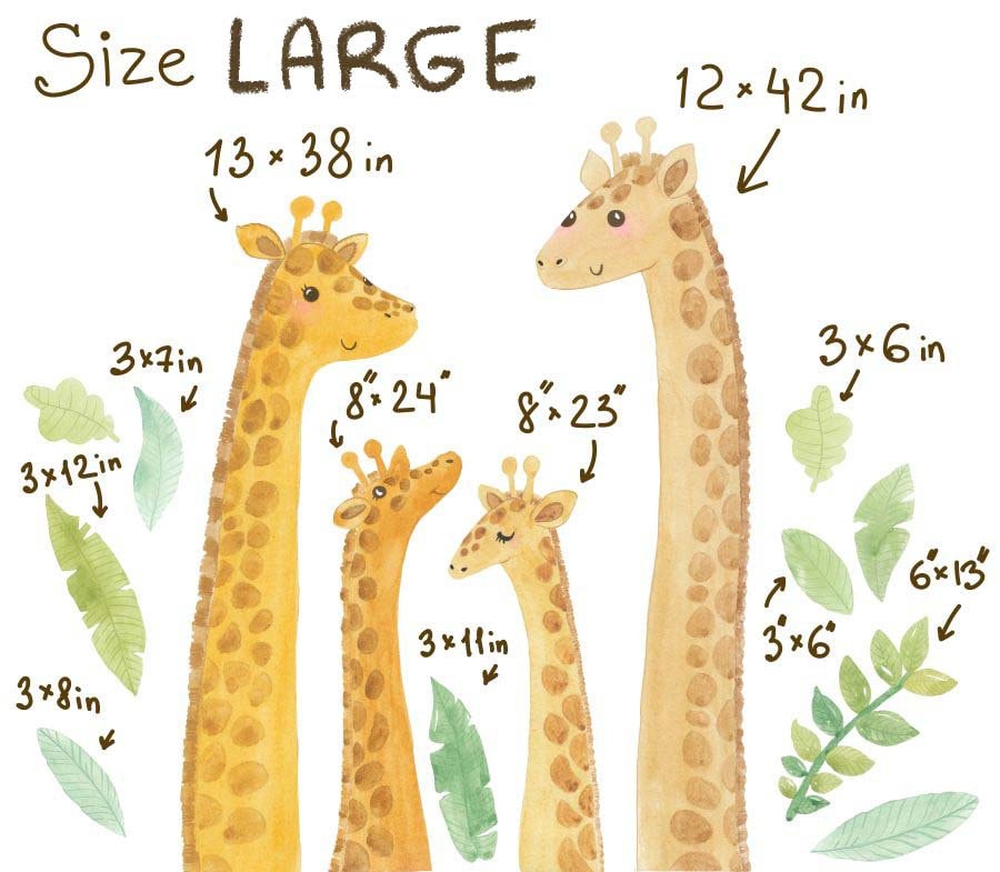 These giraffe safari animal wall decals come in two set sizes — small and large. Therefore, you can choose the amount that best fits your wall space. Additionally, custom sizes are available on request.