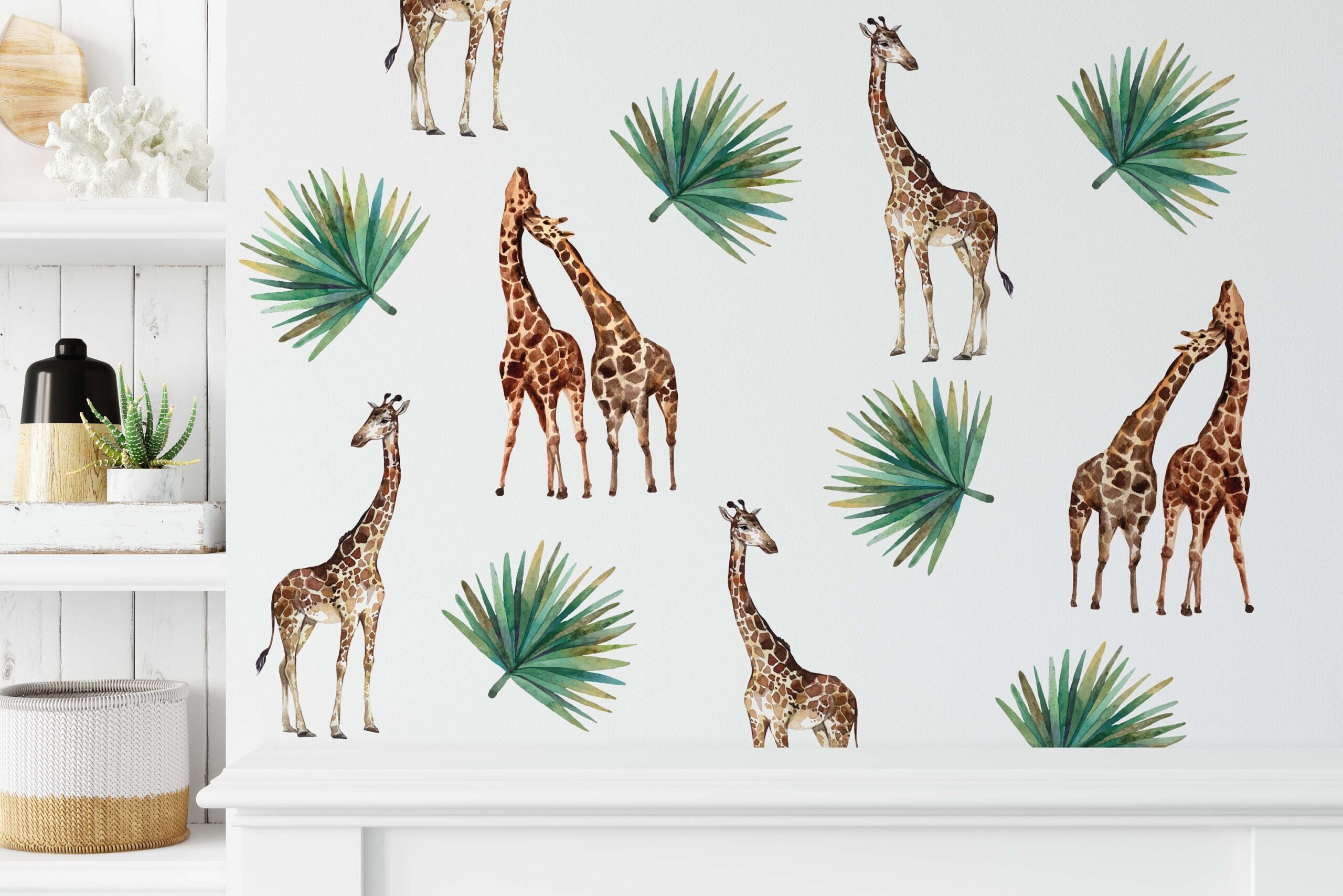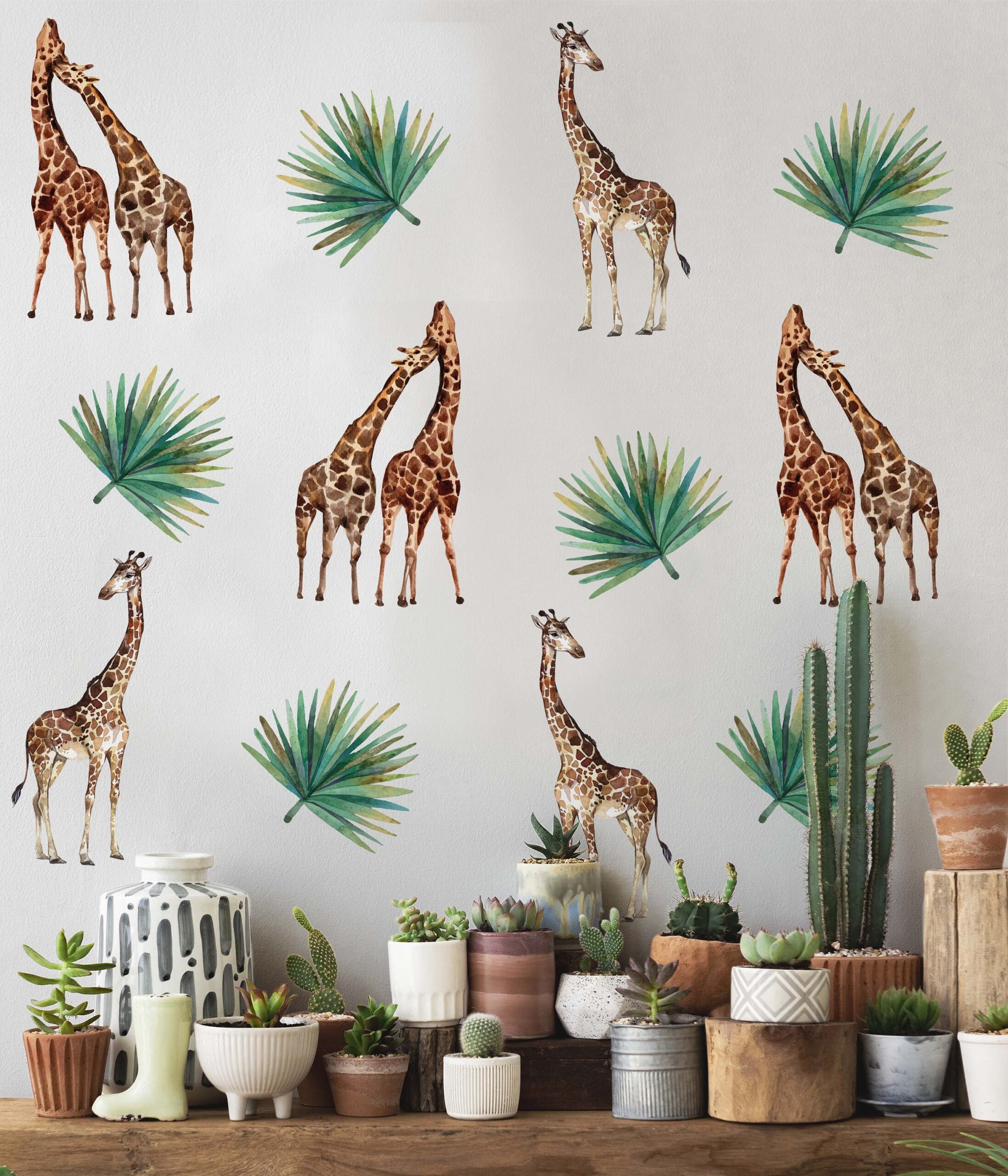 🐾 Discover our giraffes palm leaf wall decals — a beautiful design that instantly elevates any room. Furthermore, each individual piece can be placed wherever you like, so you can create a truly unique arrangement.