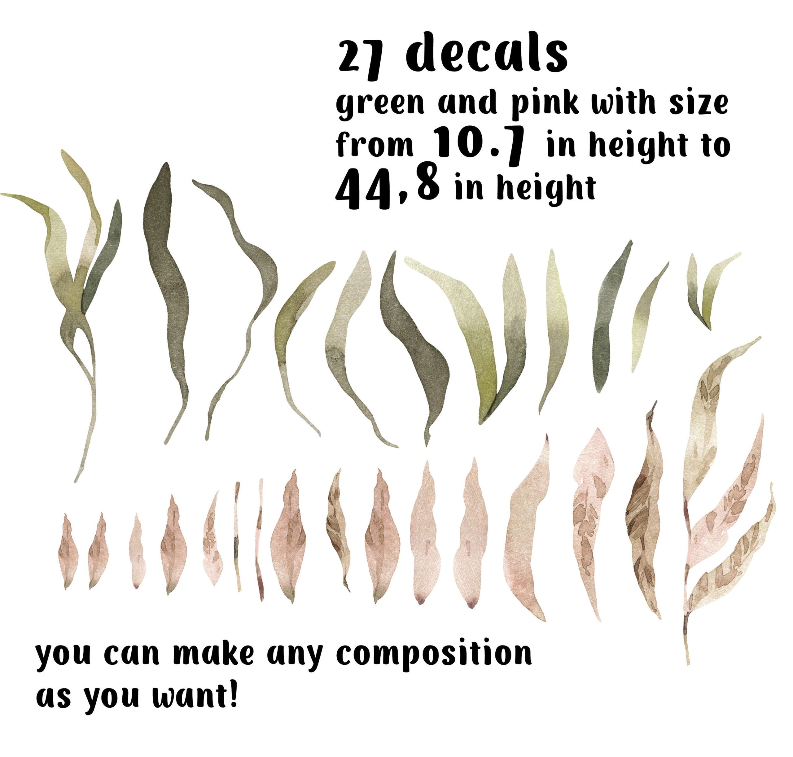 These greenery boho leaves wall decals are pre-cut and ready to apply. In addition, detailed installation instructions are included with every order.