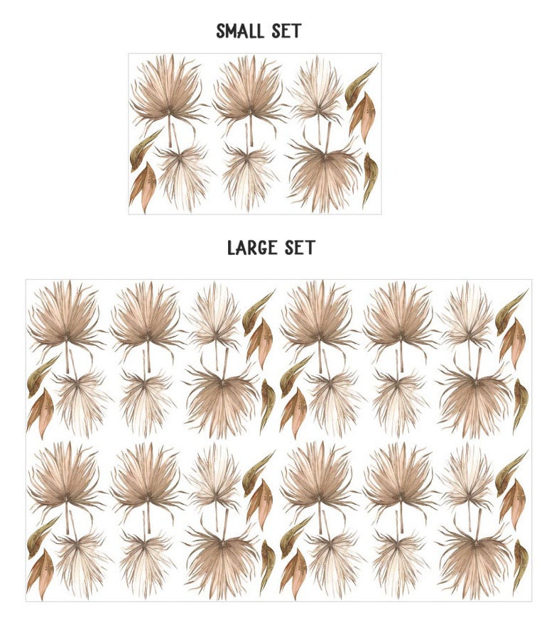 These greenery palm tree wall decals come in two set sizes — small and large. Therefore, you can choose the amount that best fits your wall space. Additionally, custom sizes are available on request.