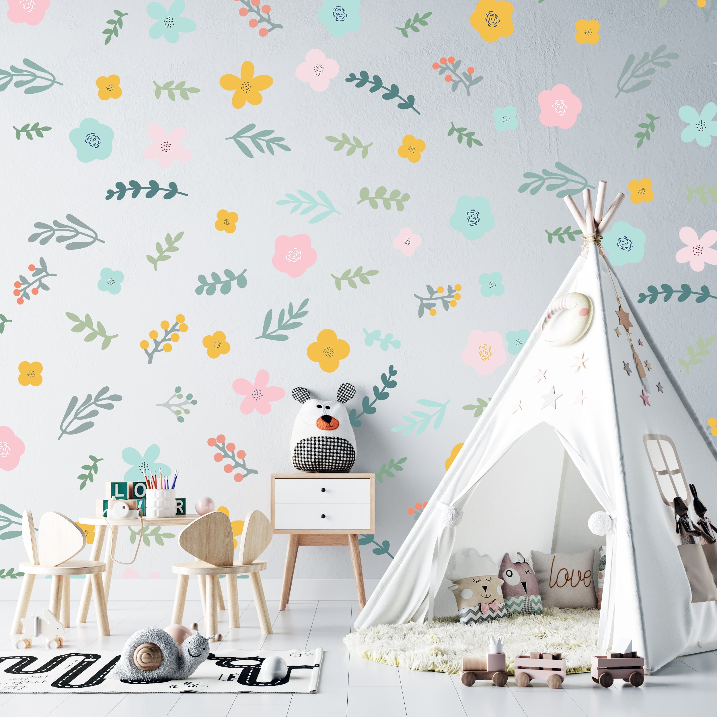 Greenery Wall Decals Flowers Sticker Nursery Room Decoration, LF063
