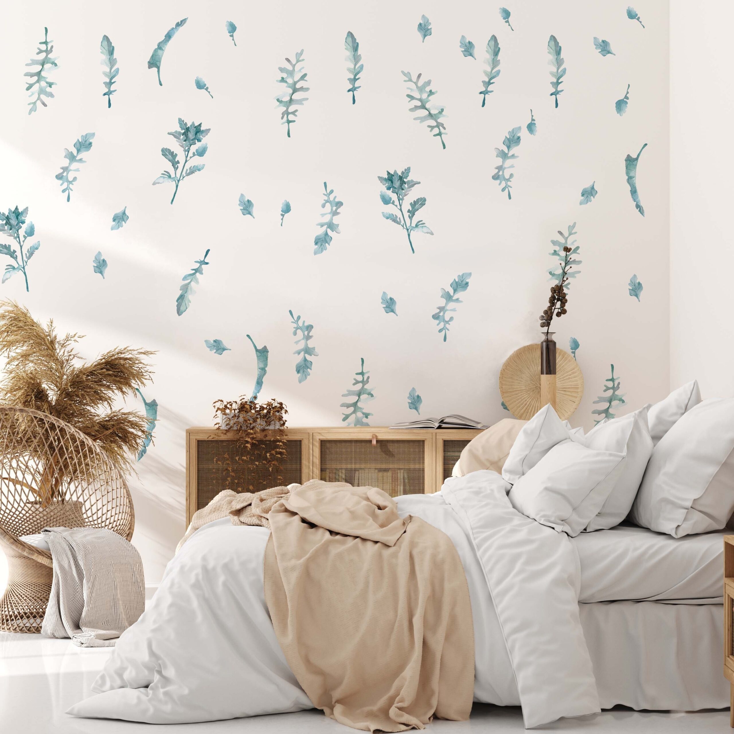 Greenery Wall Decals, Watercolor Greenery Sticker, Watercolor Green Nursery, Green Leaves Room Decoration, Large Green Leaf Wall Stickers
