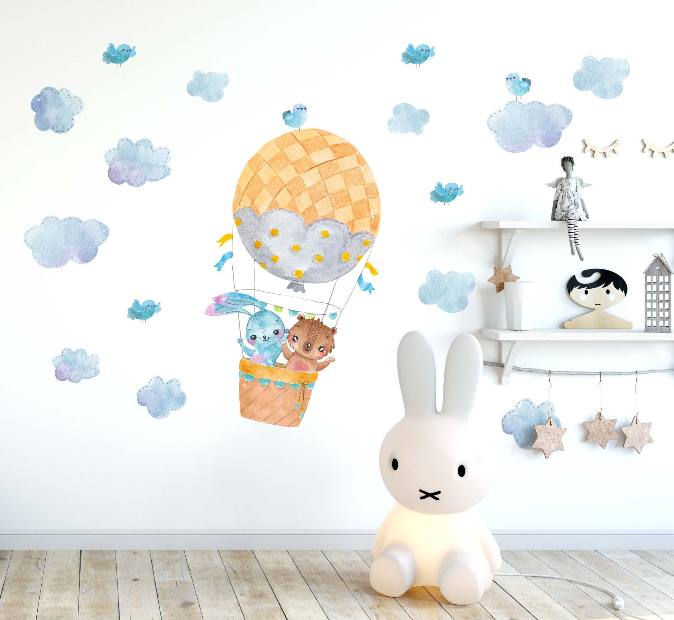 Hot air balloon decals Bunny Bear Nursery Forest Wall Stickers Clouds Bird