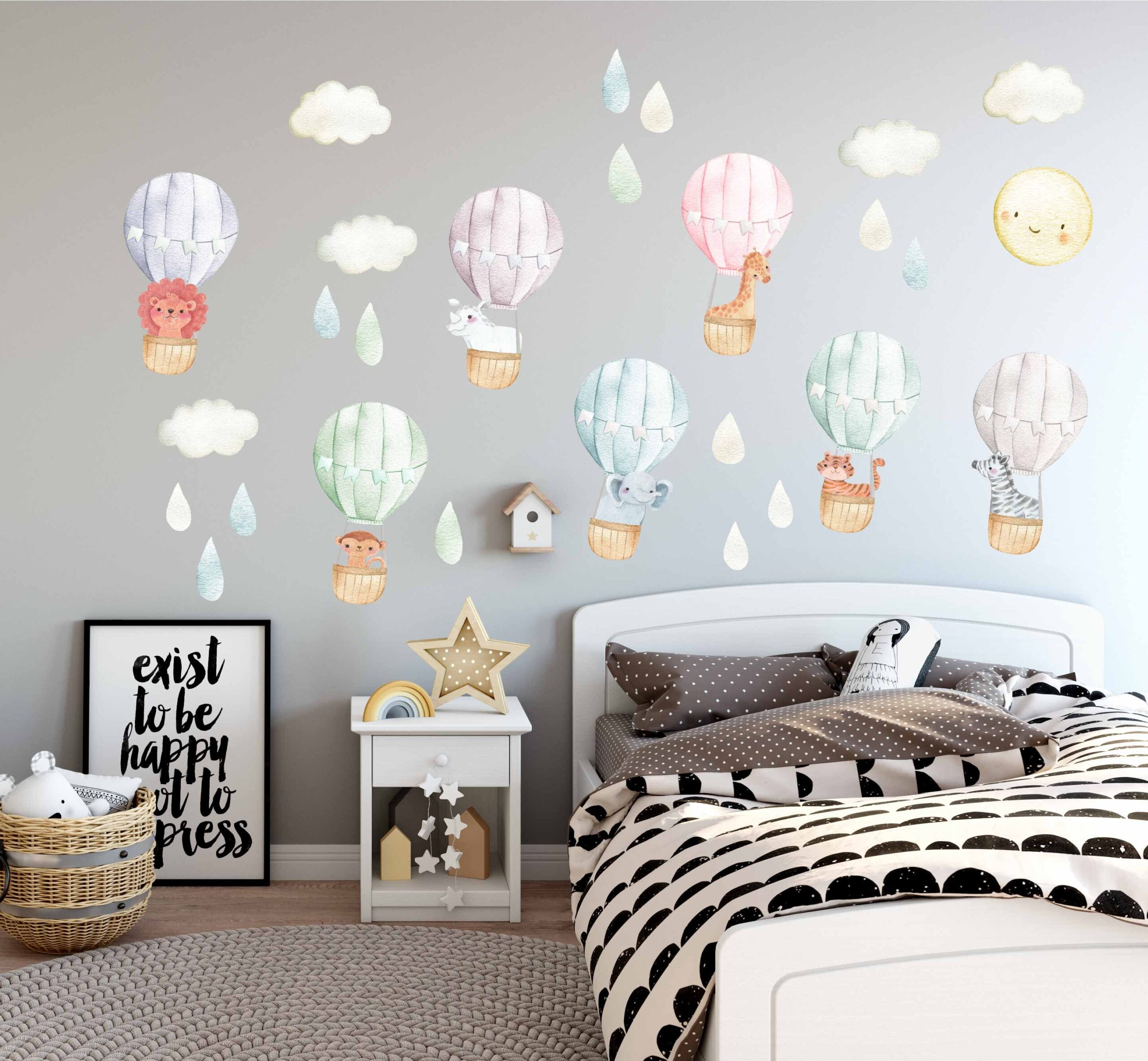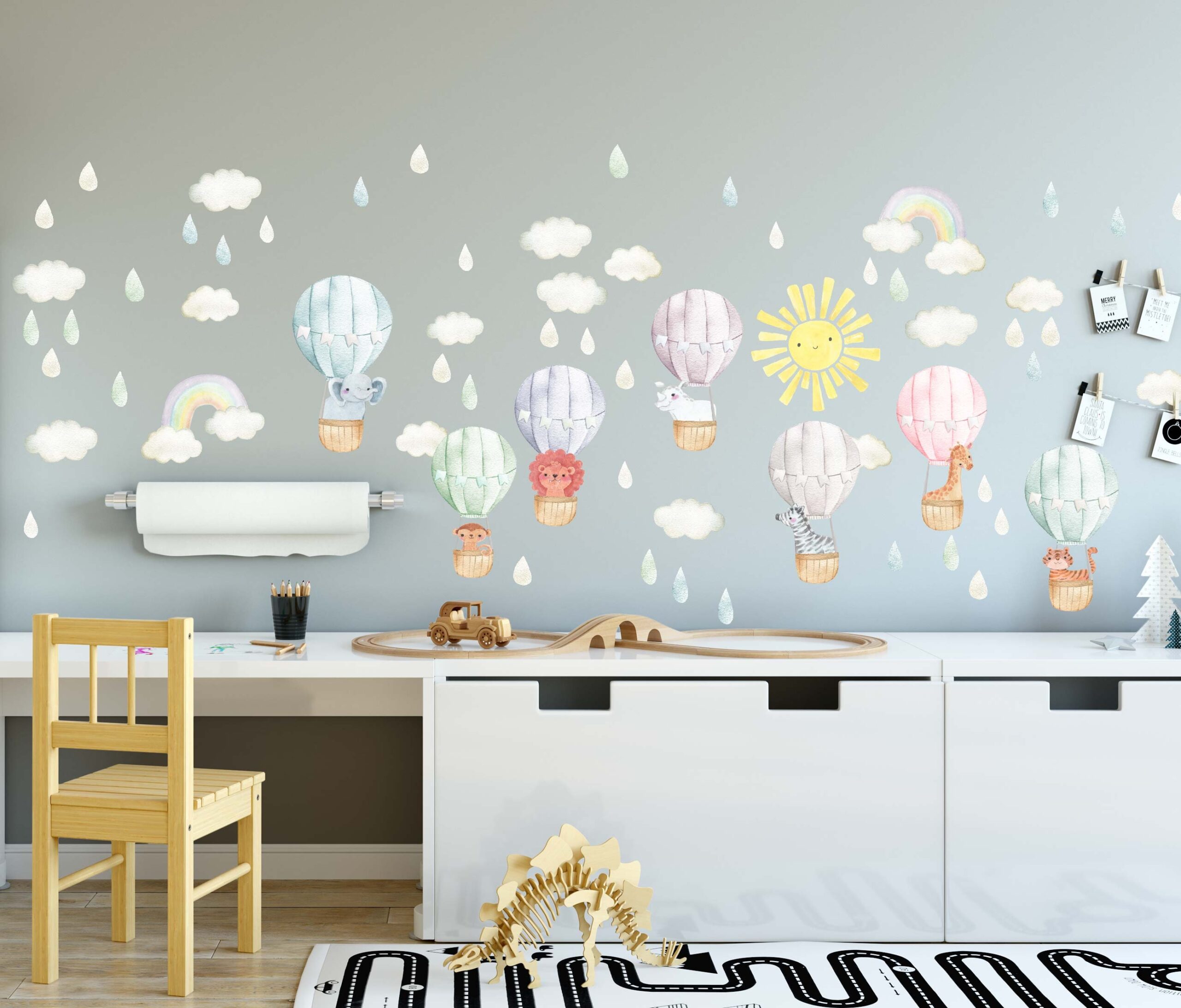 🐾 Discover our hot air balloon wall decals — a beautiful design that instantly elevates any room. Furthermore, each individual piece can be placed wherever you like, so you can create a truly unique arrangement.