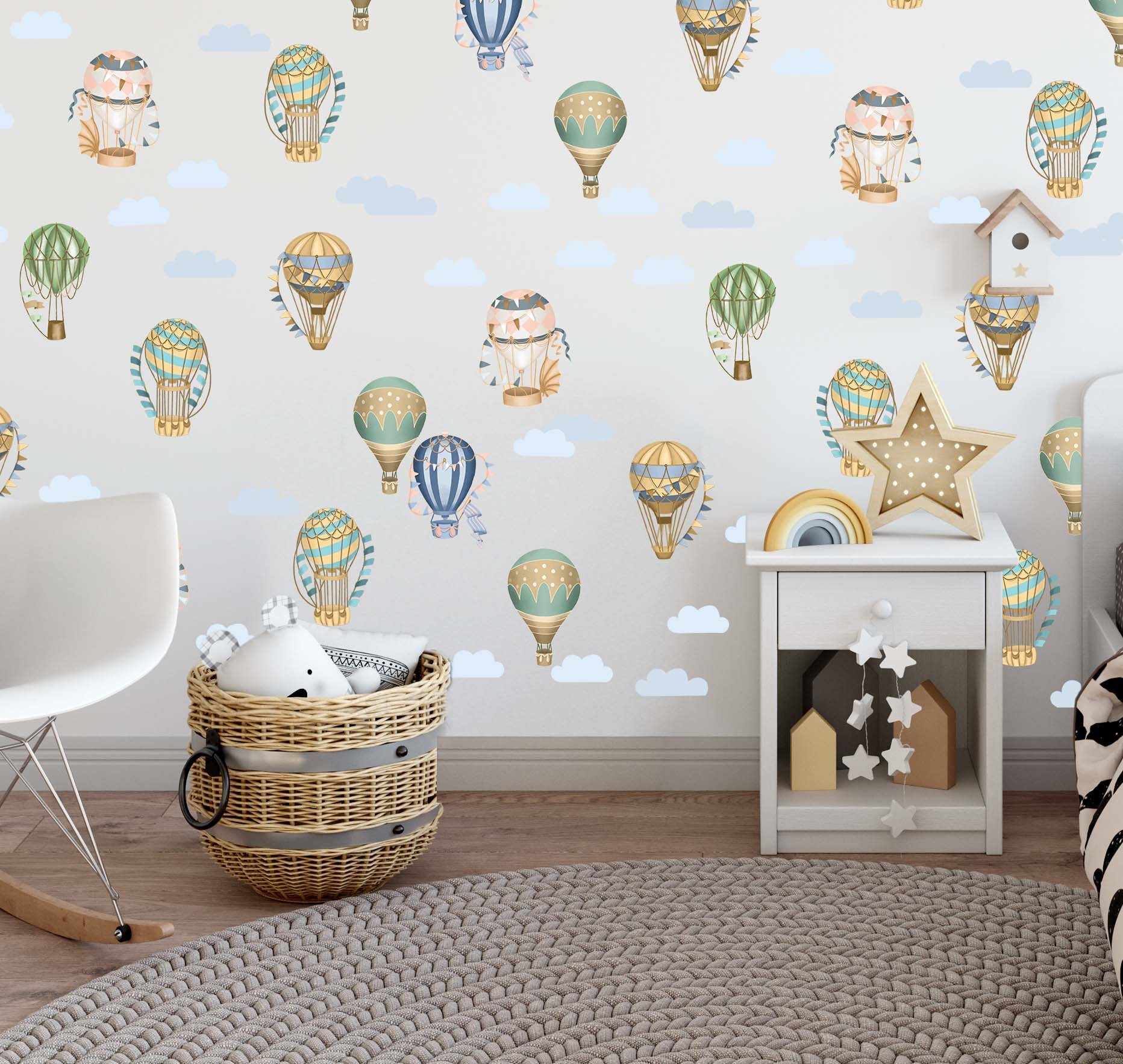 👶 Discover our hot air balloon wall decals — a beautiful design that instantly elevates any room. Furthermore, each individual piece can be placed wherever you like, so you can create a truly unique arrangement.
