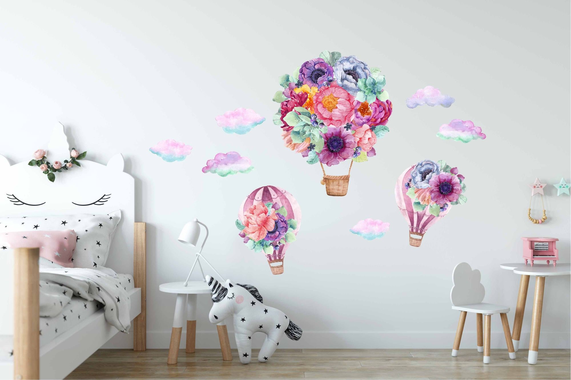 Hot Air Balloon Wall Decals | Watercolor Flower Nursery