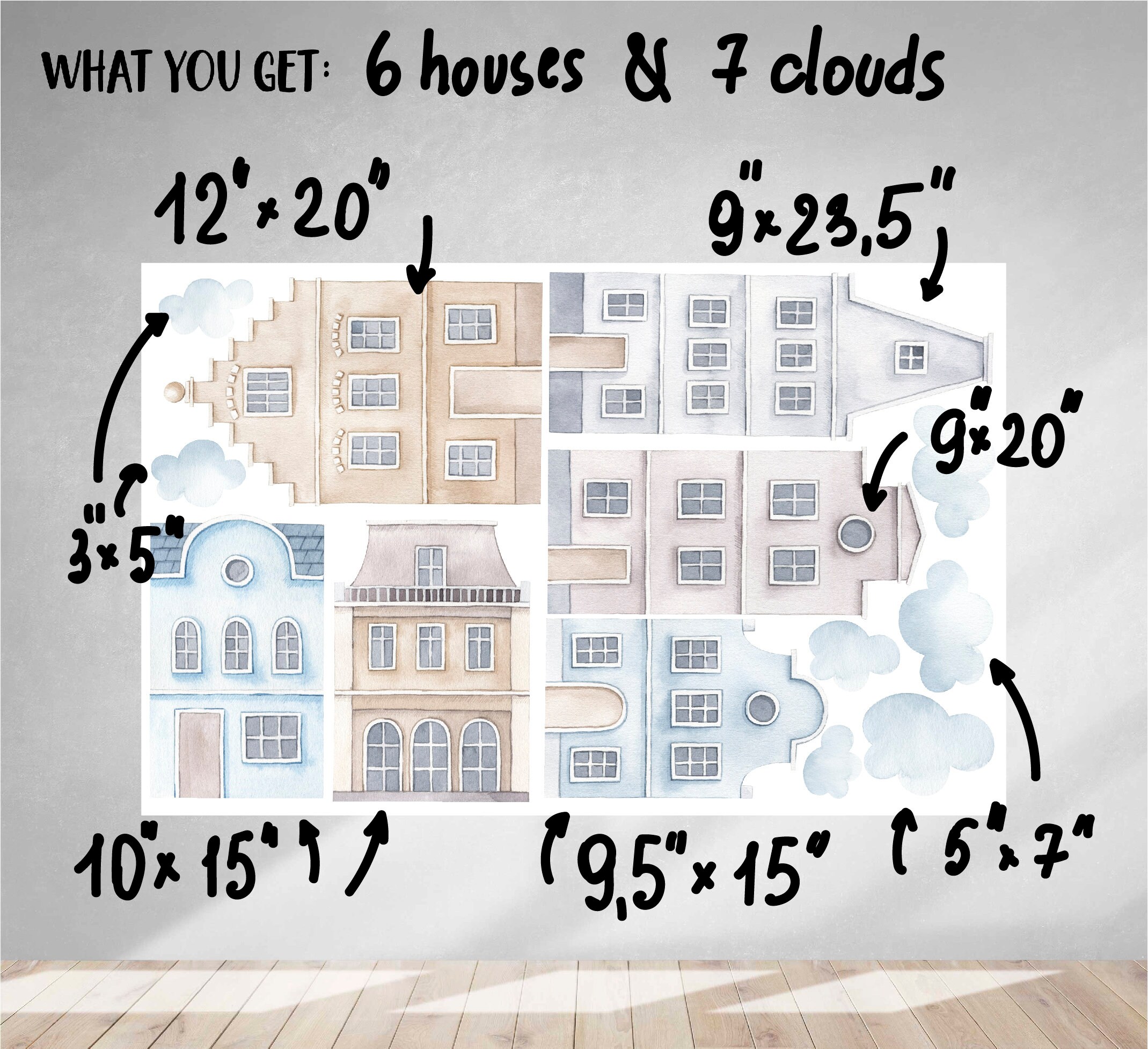 Houses Scandi Watercolor Wall Decals – What’s Included