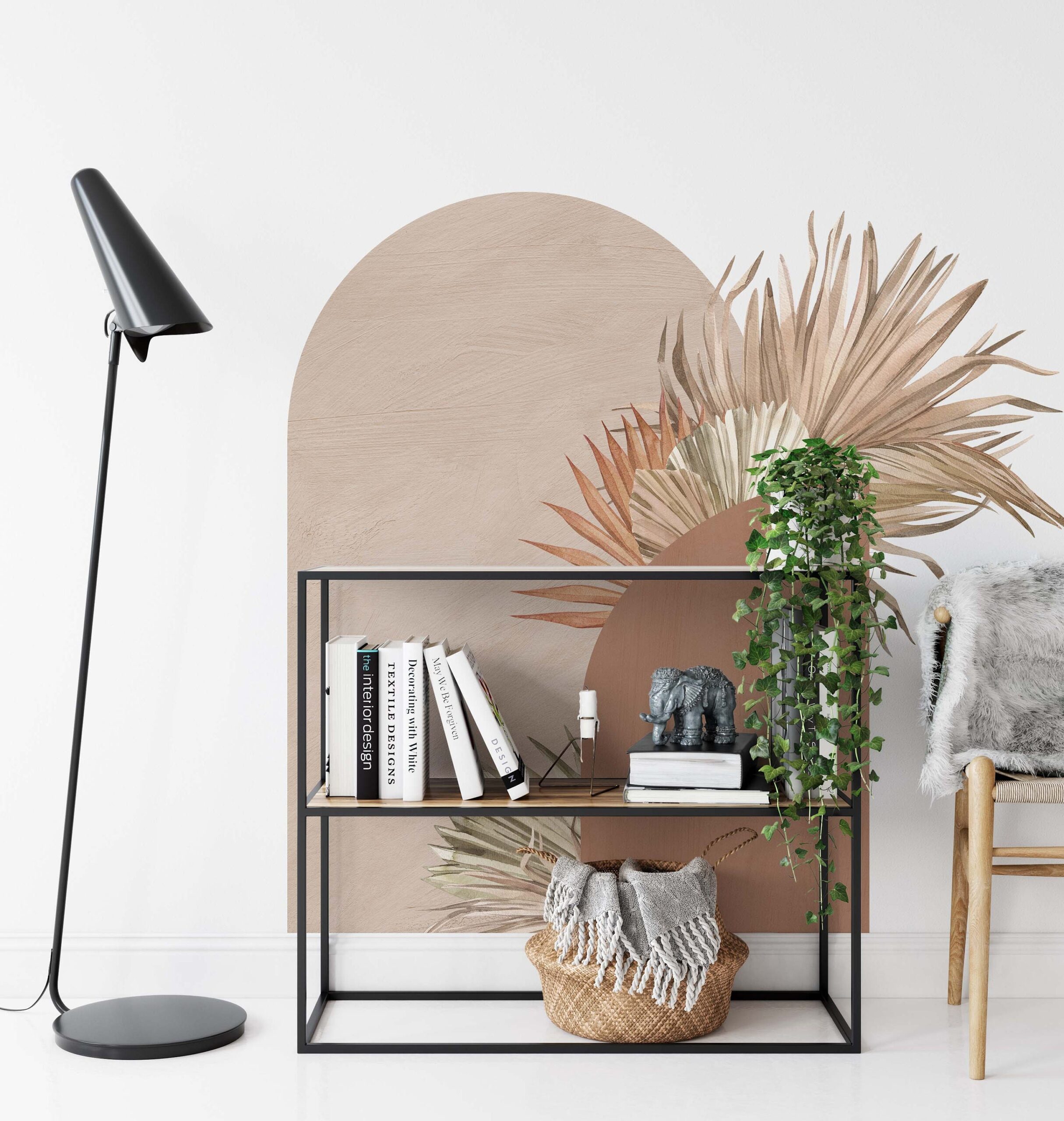 Large Arches Wall Decal Set Palm Leaves Stickers, Geometric Colour Block Boho Design Headboard, Removable Reusable renter friendly
