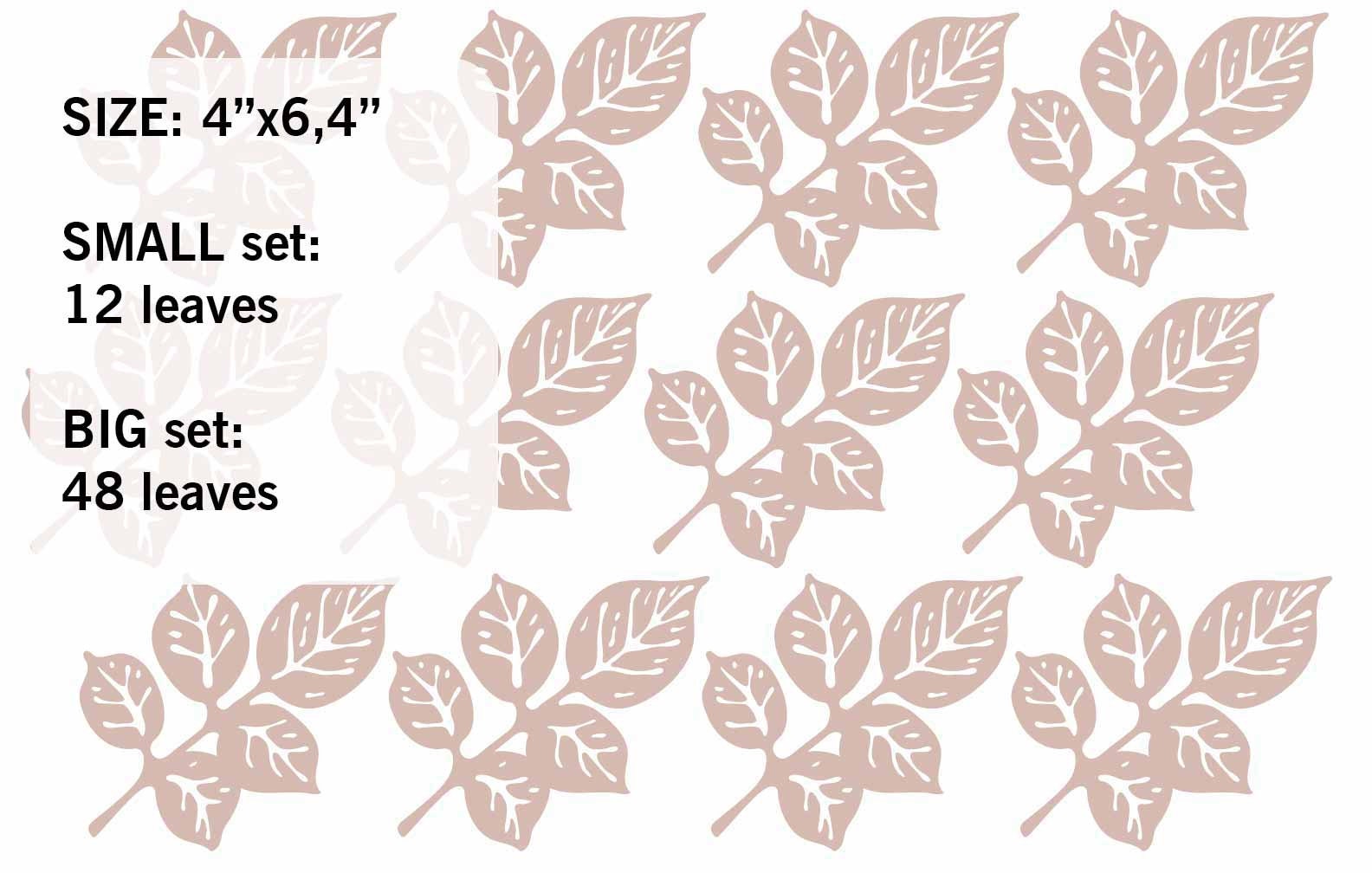 These leaves nature greenery wall decals come in two set sizes — small and large. Therefore, you can choose the amount that best fits your wall space. Additionally, custom sizes are available on request.