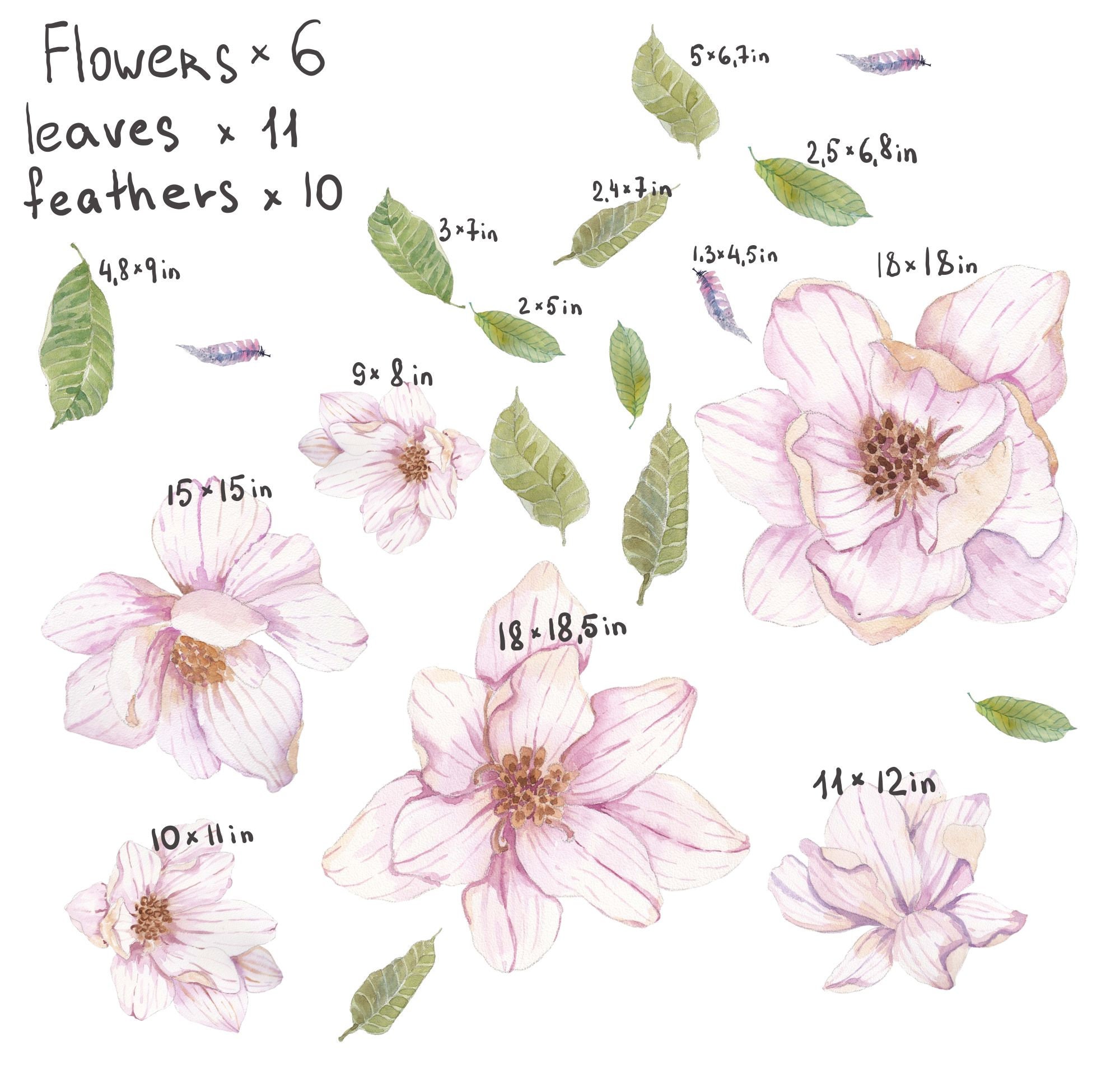 Magnolia Pink Flowers Wall Decals – What’s Included