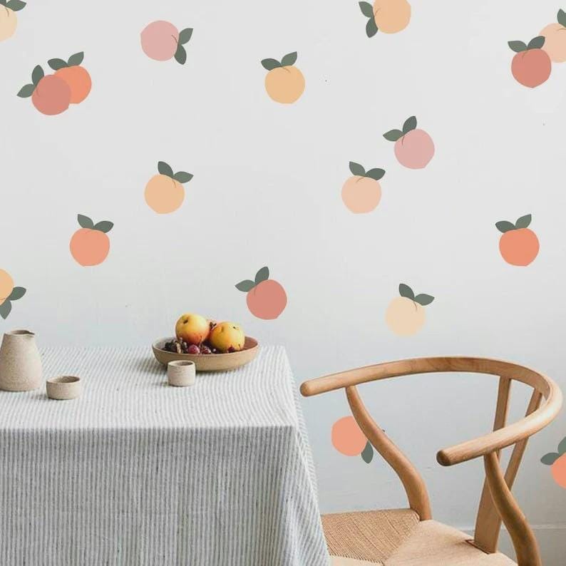 Enhance your space with our Peaches Wall Decals! Featuring hand-drawn peach designs and leafy accents, these charming kitchen wall stickers are ideal for laundry rooms or kids’ decor. Easy to apply and remove, they bring a fresh and playful touch to any room. Shop now to refresh your walls with our delightful decals!